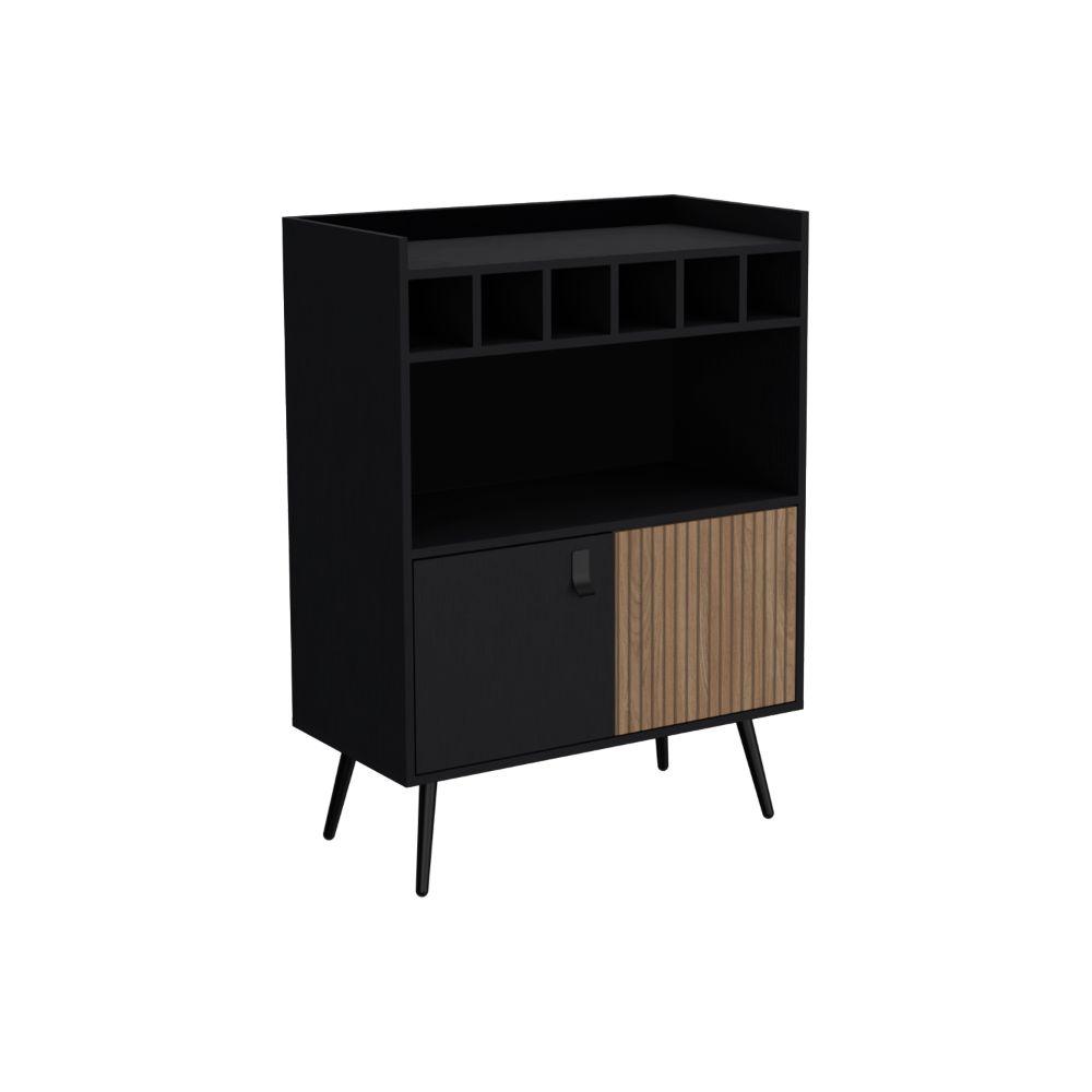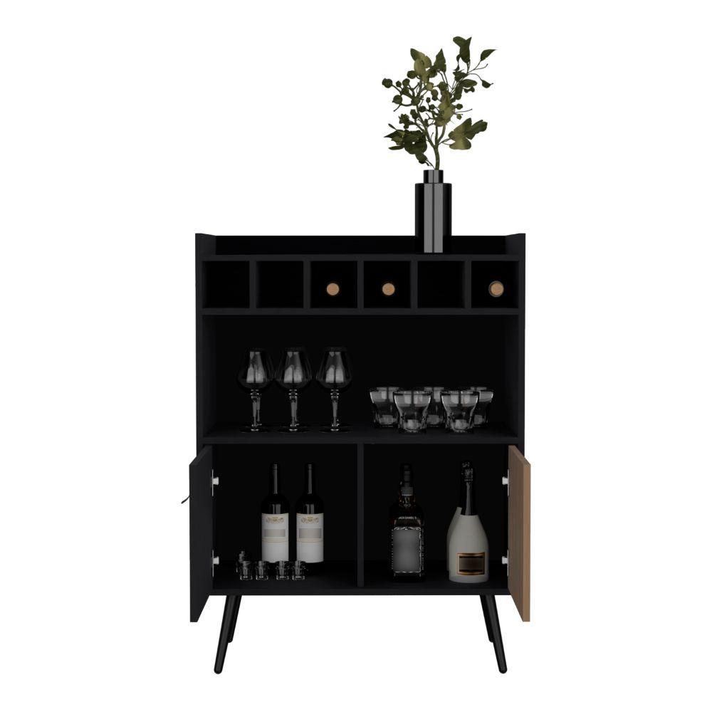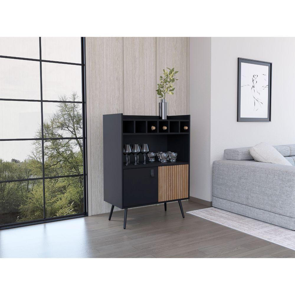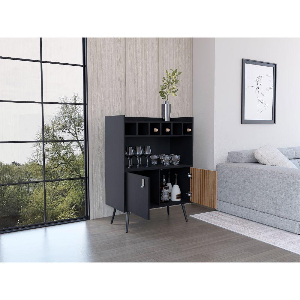 Bar bajo, con espacio para botellas de vino y copas, dos puertas, diseño moderno, fácil armado.