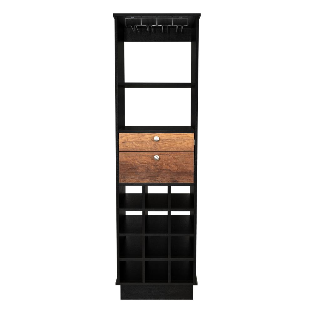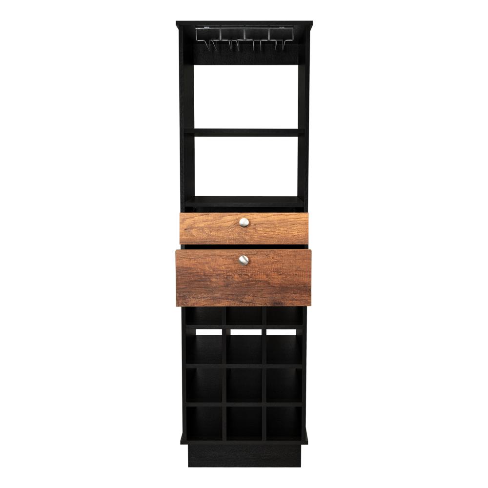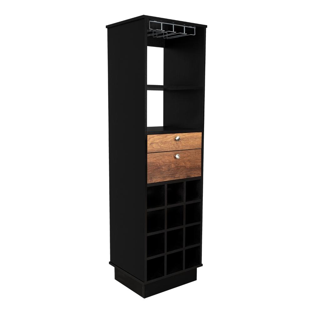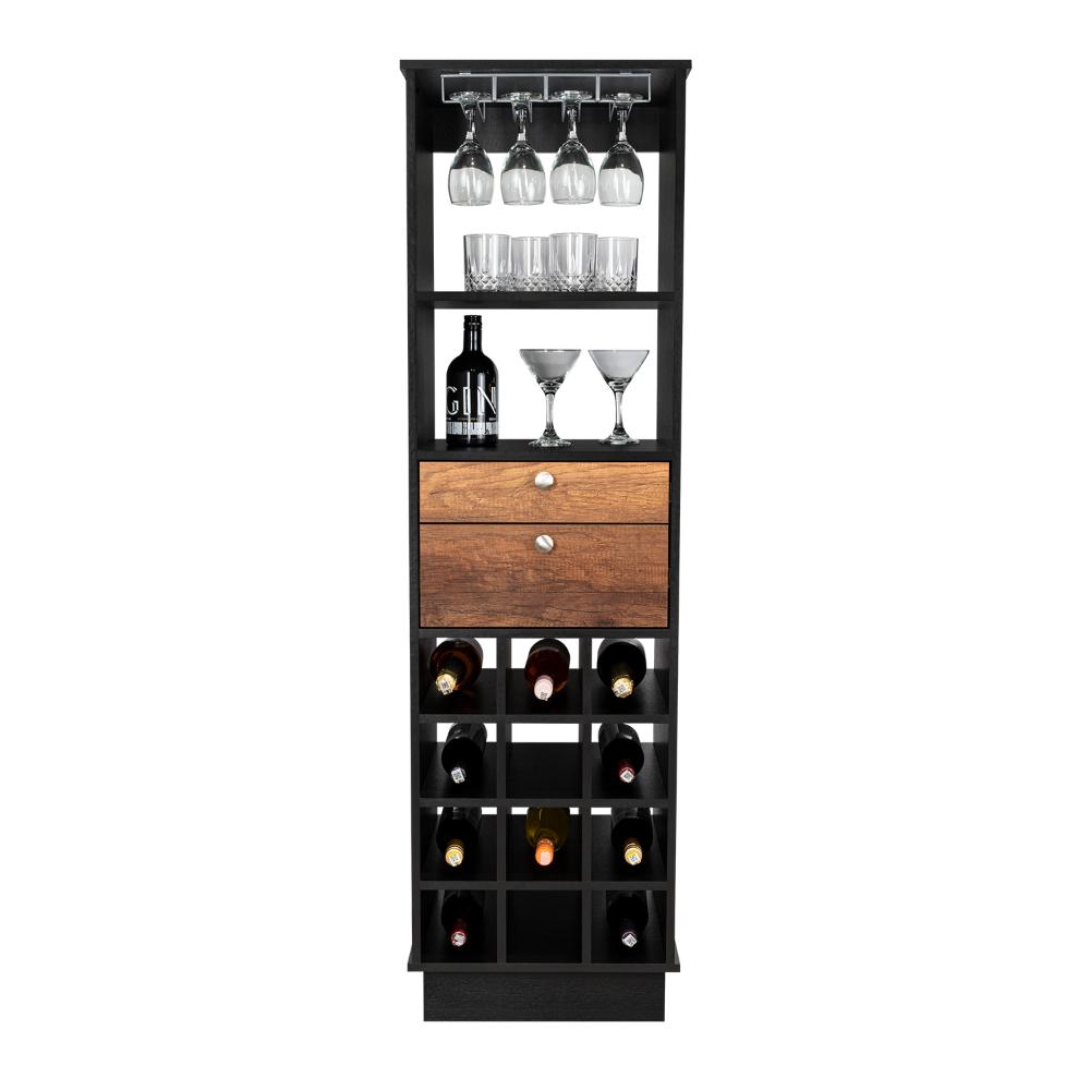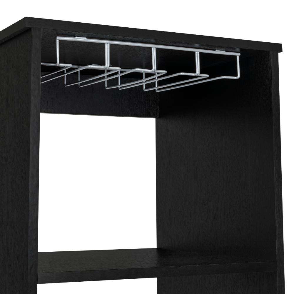 Bar, con rack para botellas, colgador de copas, superficie extensible y cajón para almacenamiento.
