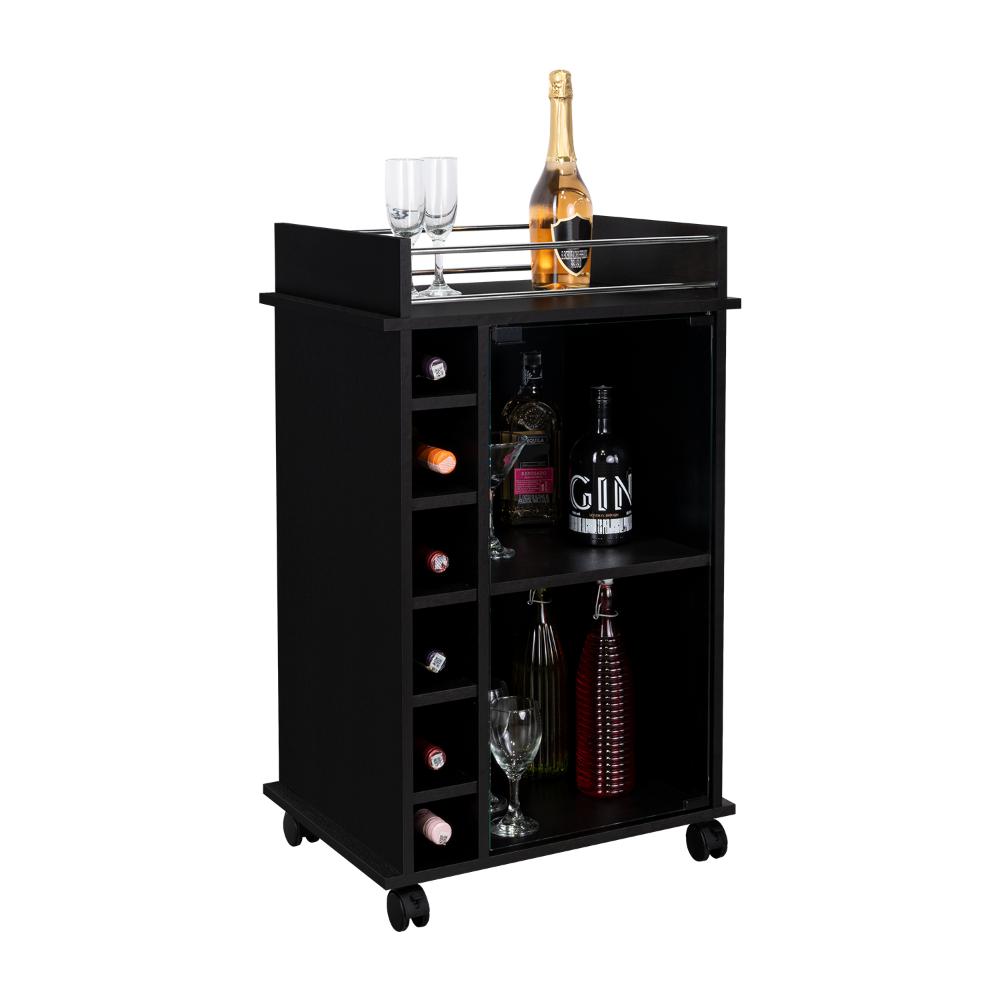 Bar, con 1 puerta batiente de vidrio, rodachines, espacio para porta botellas y copas.