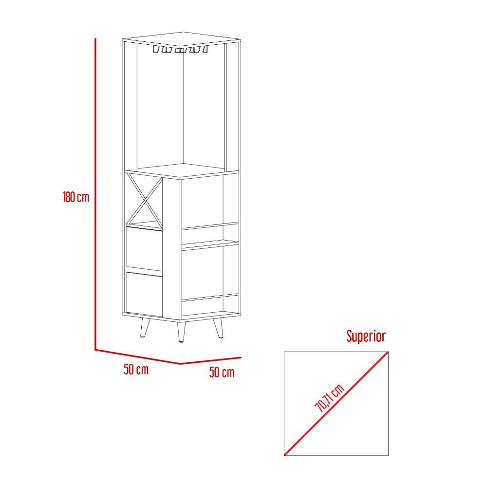 Bar Esquinero, con amplio espacio de almacenamiento y porta copas.