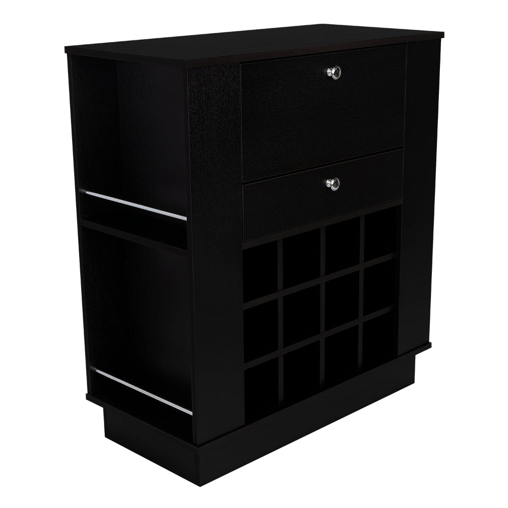 Bar, con diseño multifuncional mesa superior para servir, espacio para organizar botellas de vino u otros licores, cajones deslizables con correderas metálicas, entrepaños laterales para ubicar botellas de licos u otros elementos para bar.