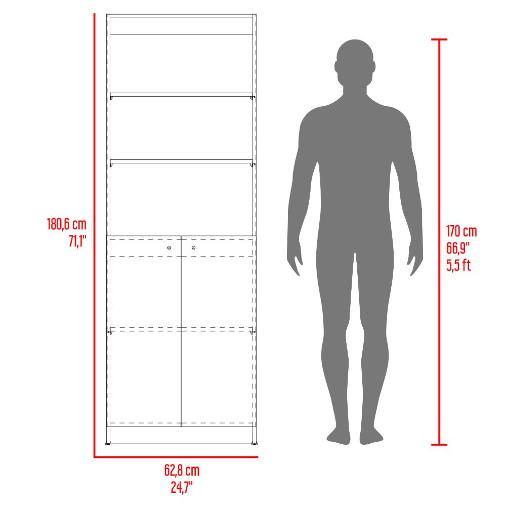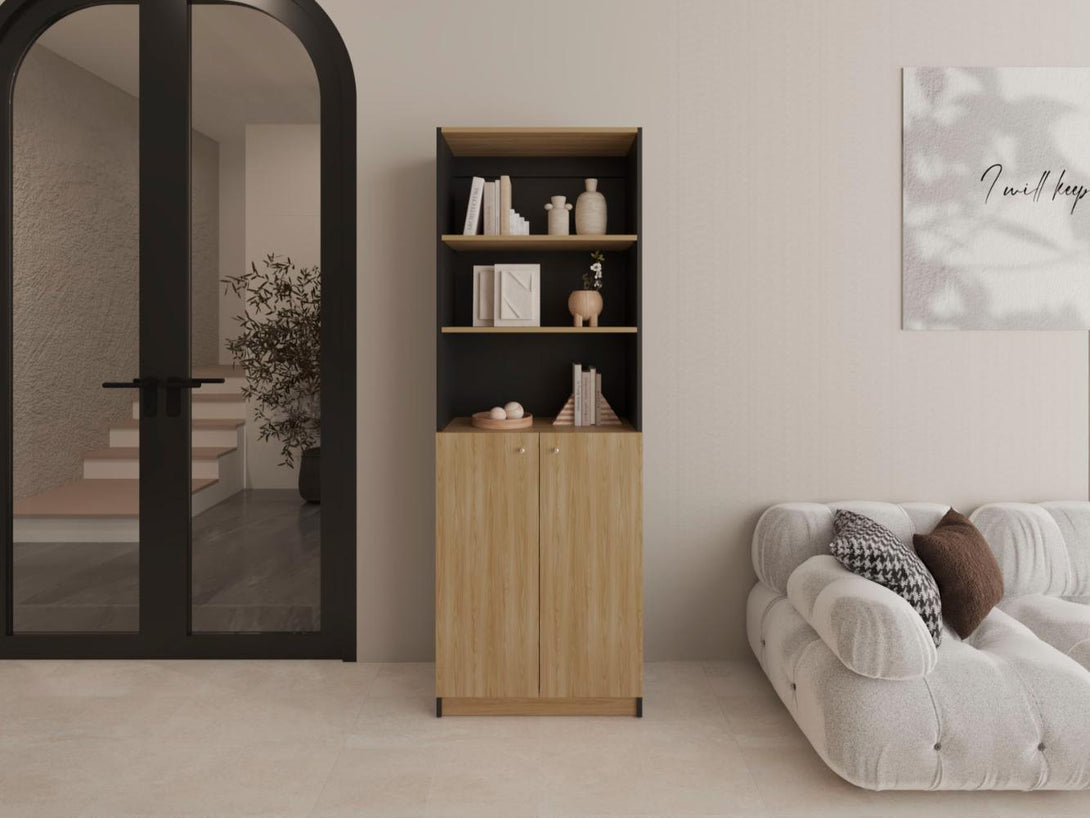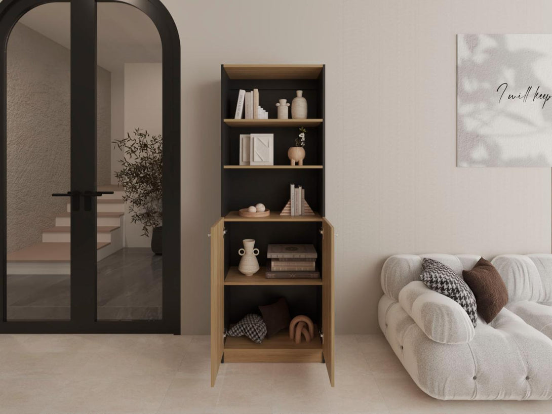 Biblioteca, con espacio para libros y objetos decorativos, dos puertas abatibles, de fácil armado e instalación.