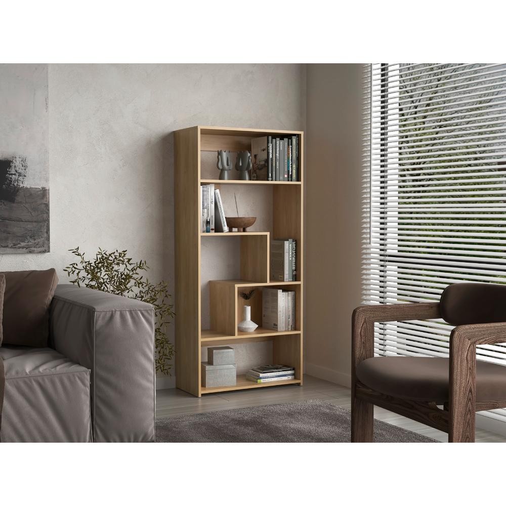 Biblioteca, con espacio para colocar libros y objetos decorativos , diseño moderno, cinco entrepaños