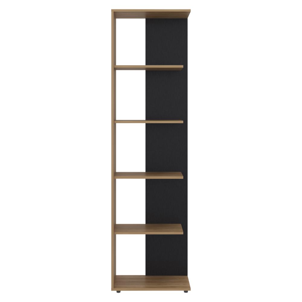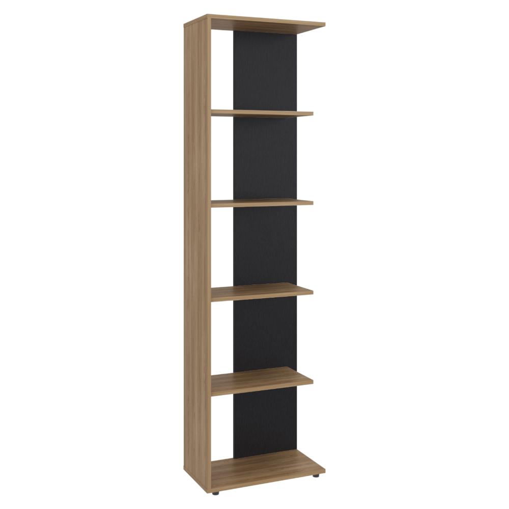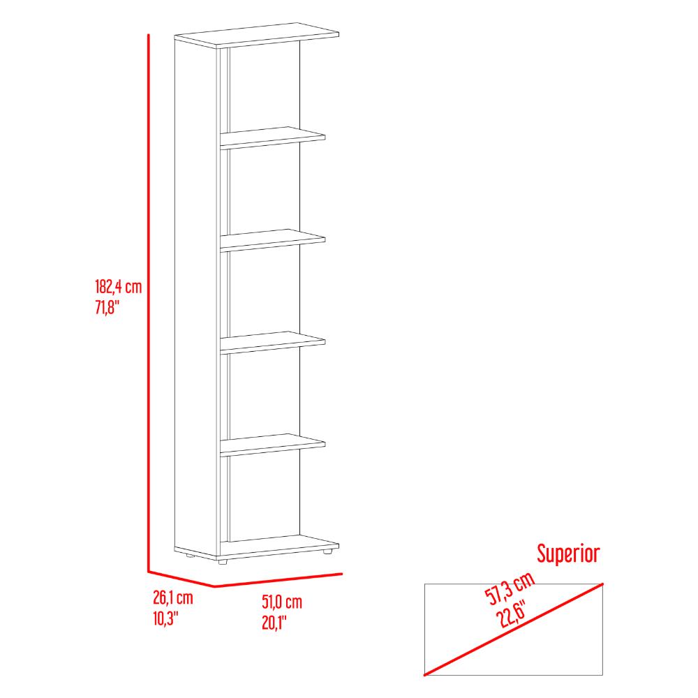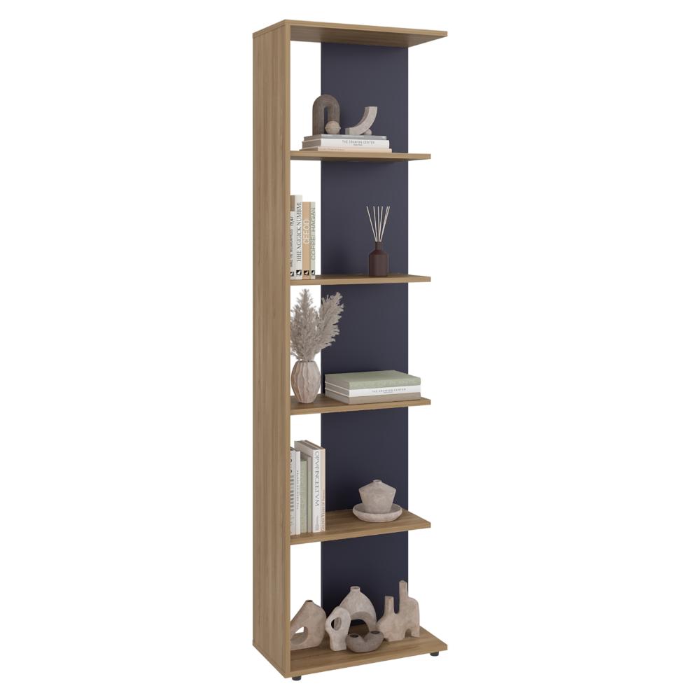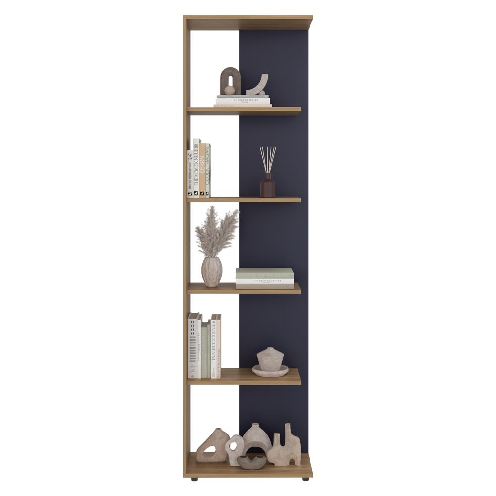 Biblioteca, con espacios para libros y objetos decorativos. y cinco entrepaños