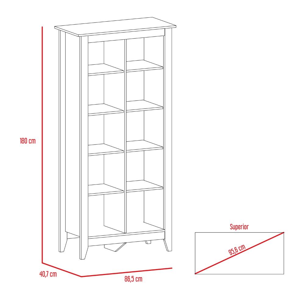Biblioteca, con amplios entrepaños para objetos decorativos, libreros u otros, gran capacidad de almacenamiento, de fácil armado.