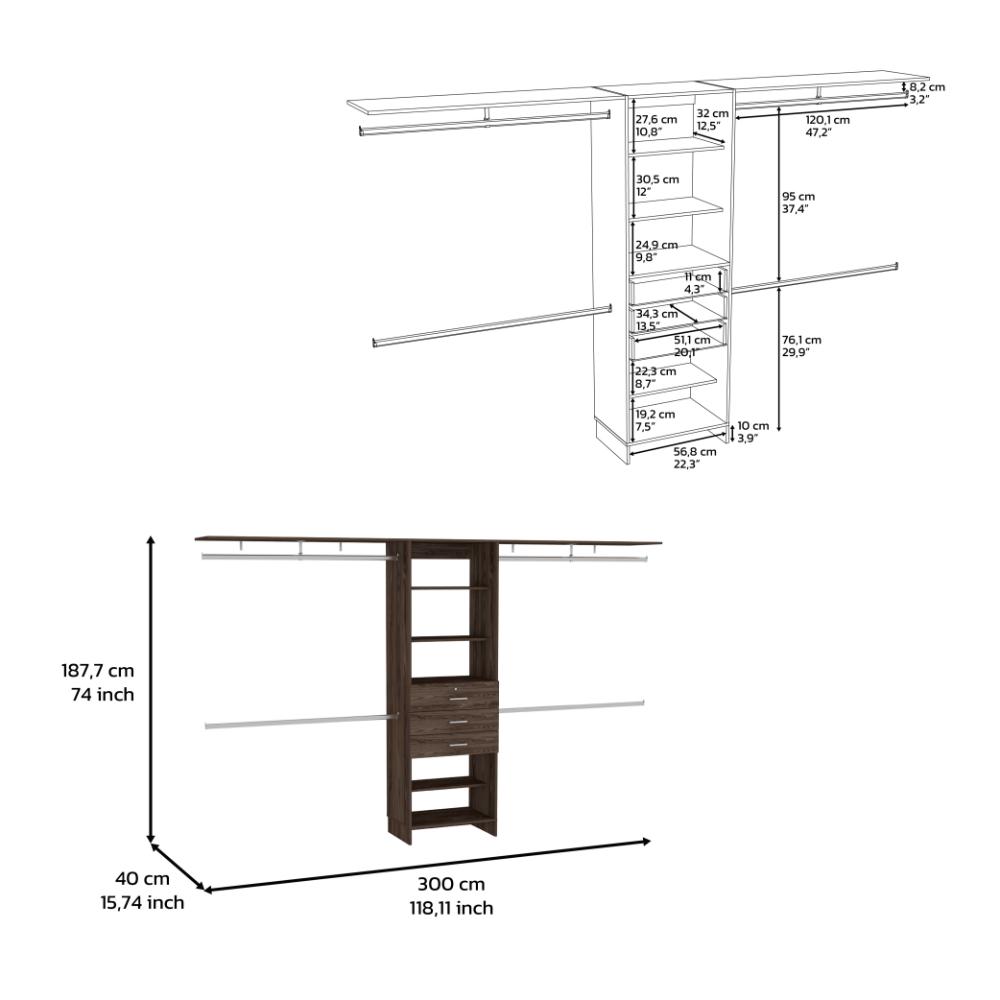 Closet Abierto Leda, Chocolate, con Cuatro Tubos Cromados