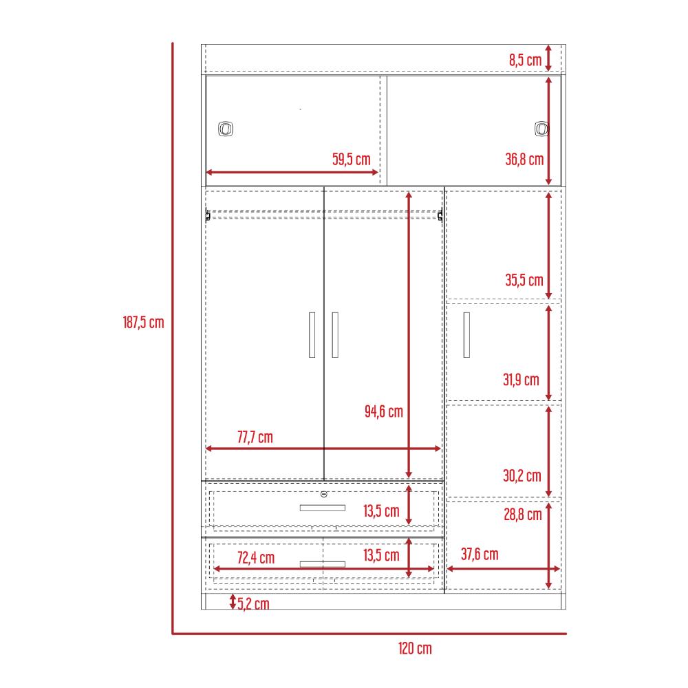 Closet Alma, Café Claro y Blanco, con Dos Cajones y Dos Puertas Corredizas