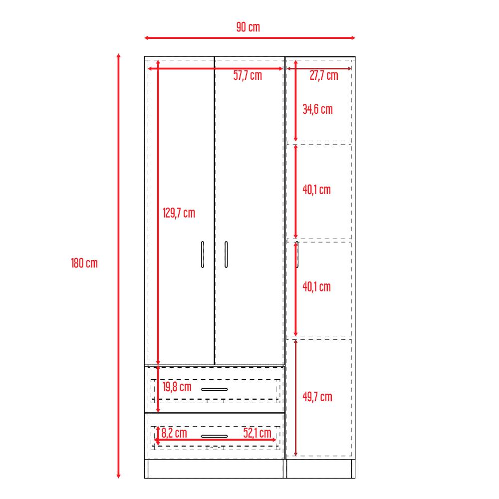 Closet América, Nogal y Blanco, con Dos Cajones y Variedad de Entrepaños