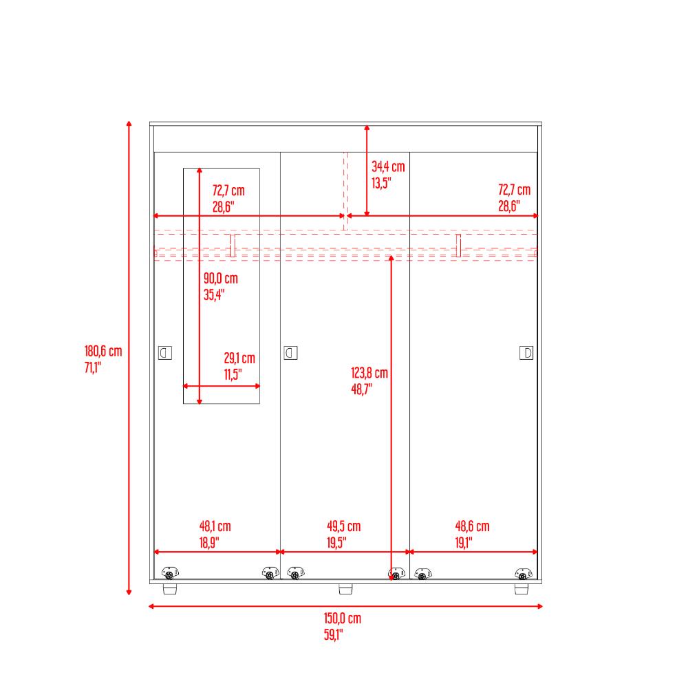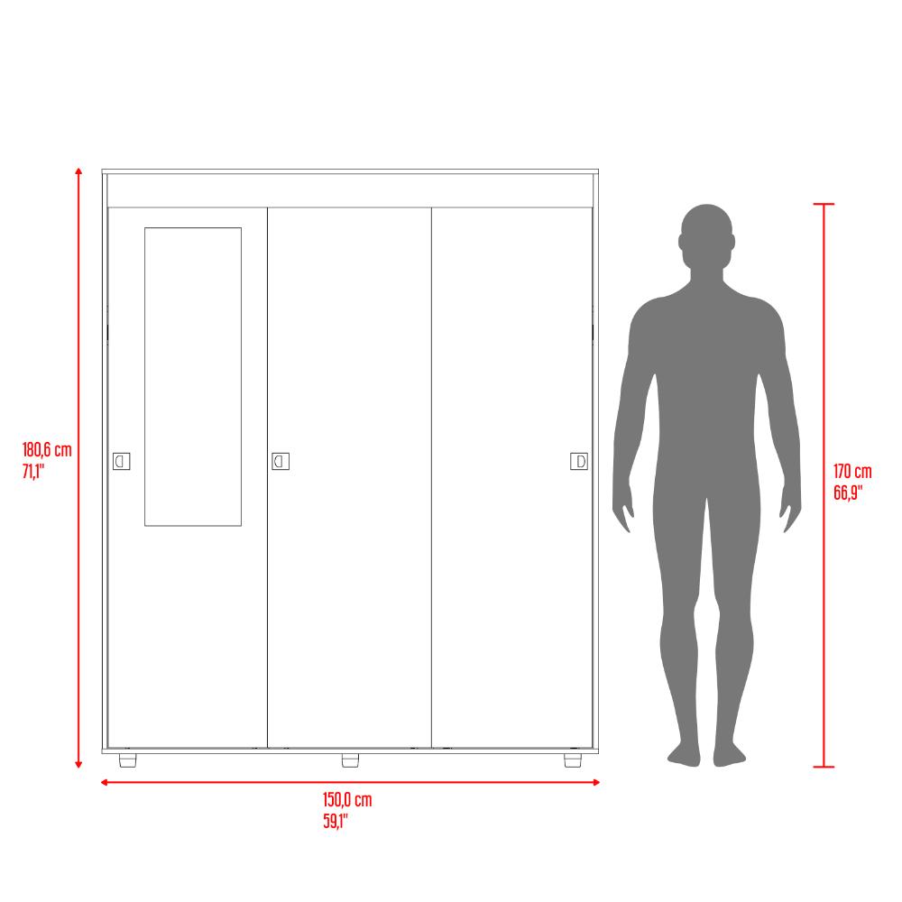 Closet, con tres puertas corredizas, un tubo para colgar ropa y amplios espacios de guardado. Incluye Espejo