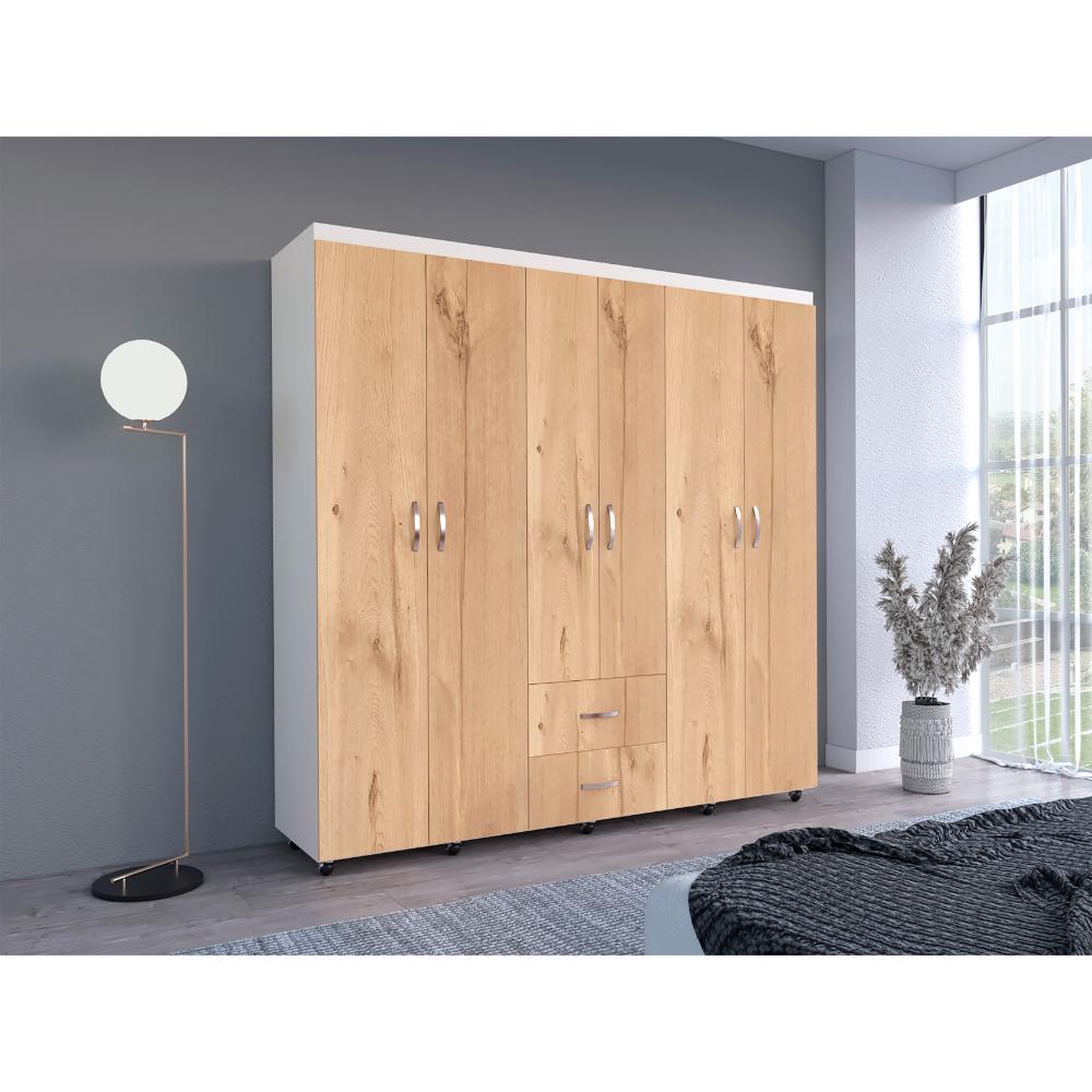 Closet Bariloche Bombay, Café Claro y Blanco Duqueza con Variedad de Entrepaños y Seis Puertas Abatibles