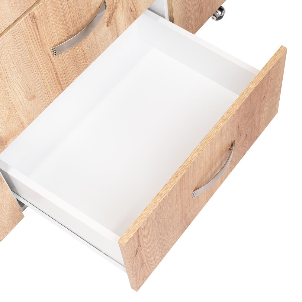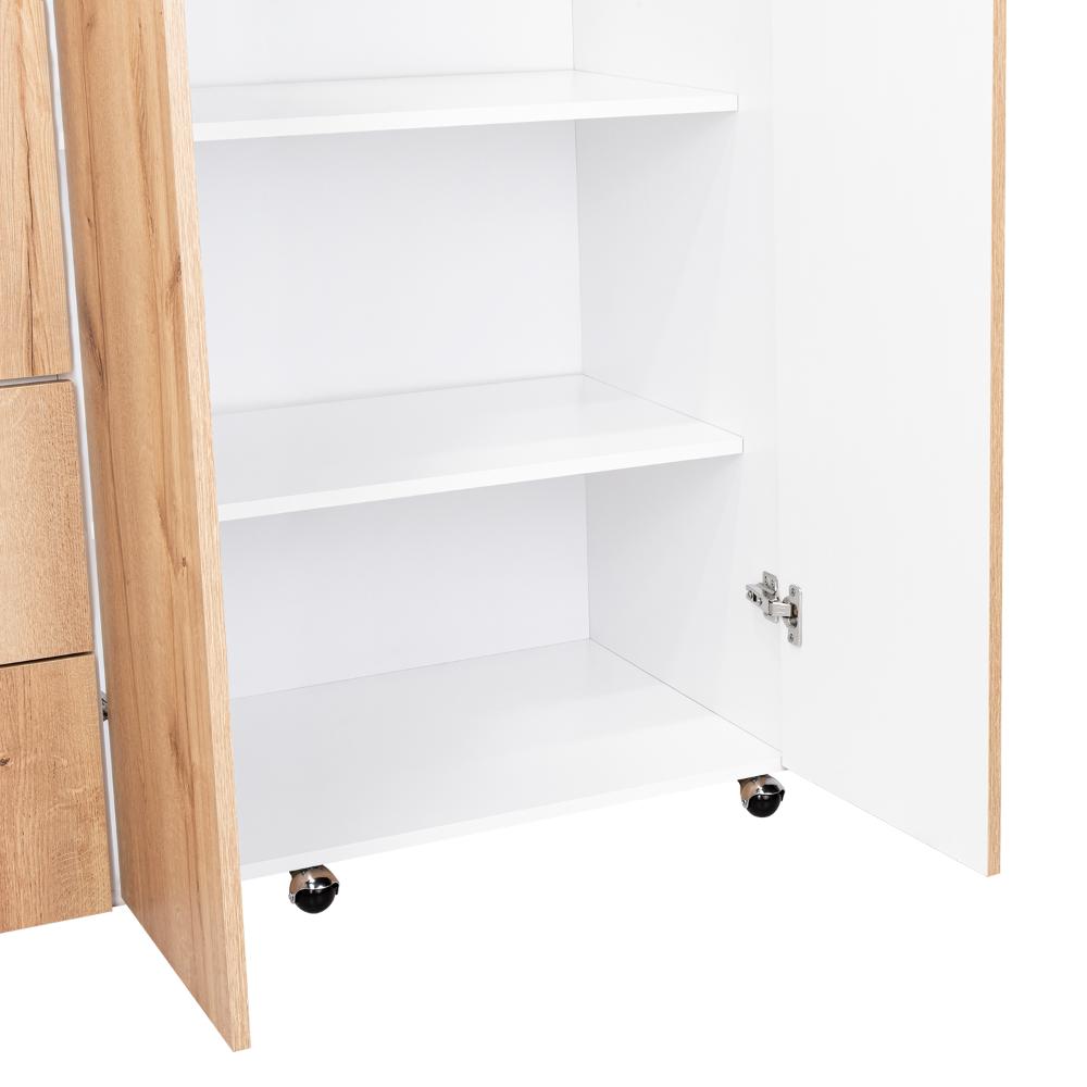 Elaborado en Madera aglomerada MDP, recubierta con láminas melamínicas de excelente calidad, en color Café Claro y Blando Duqueza.