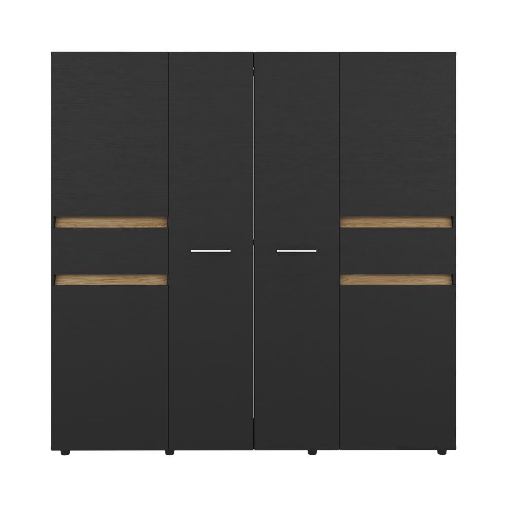 Closet, con seis puertas batientes, dos cajones, dos tubos para colgar ropa y amplios espacios de guardado.