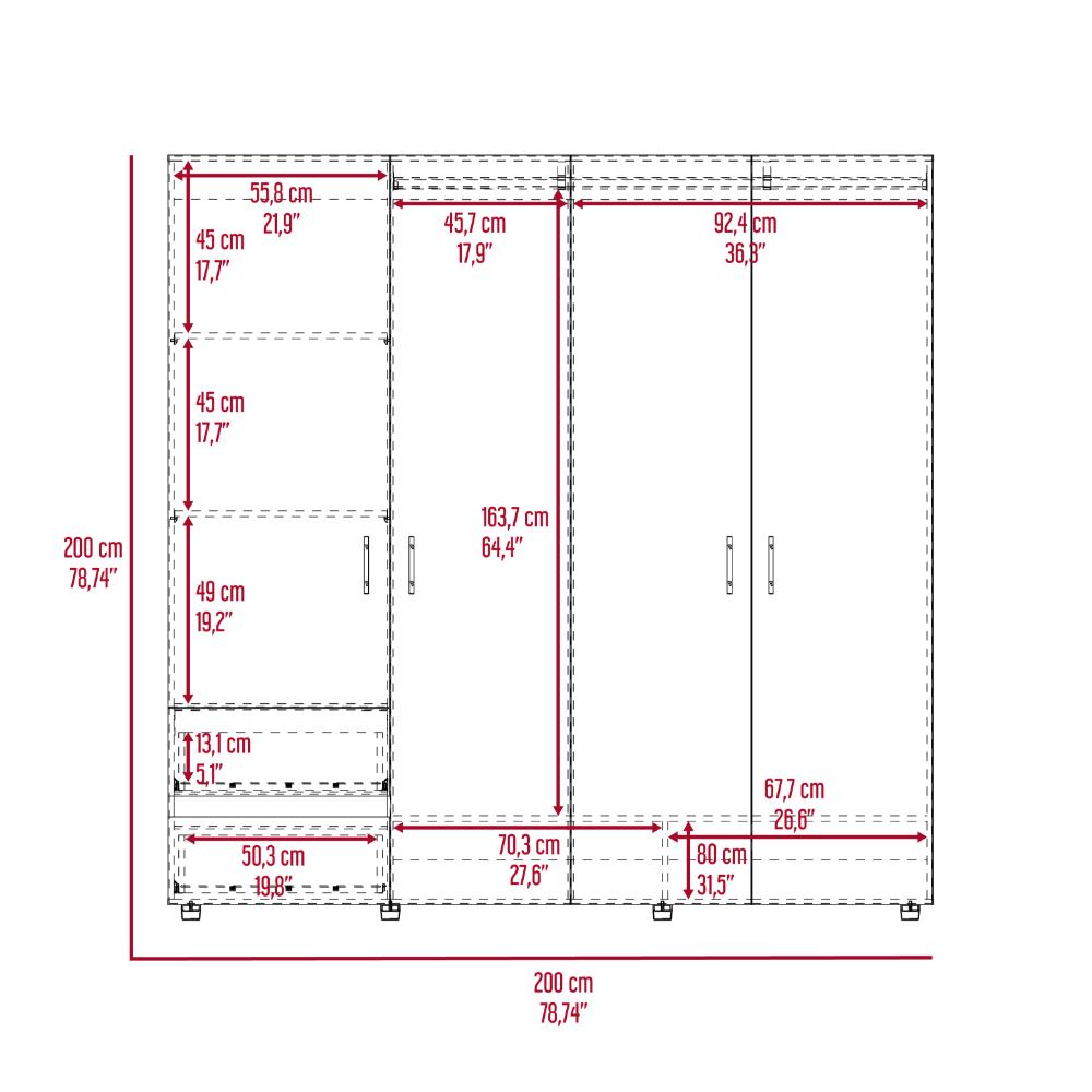 Closet Light 200, Nevado y Blanco, con amplios espacios de almacenamiento