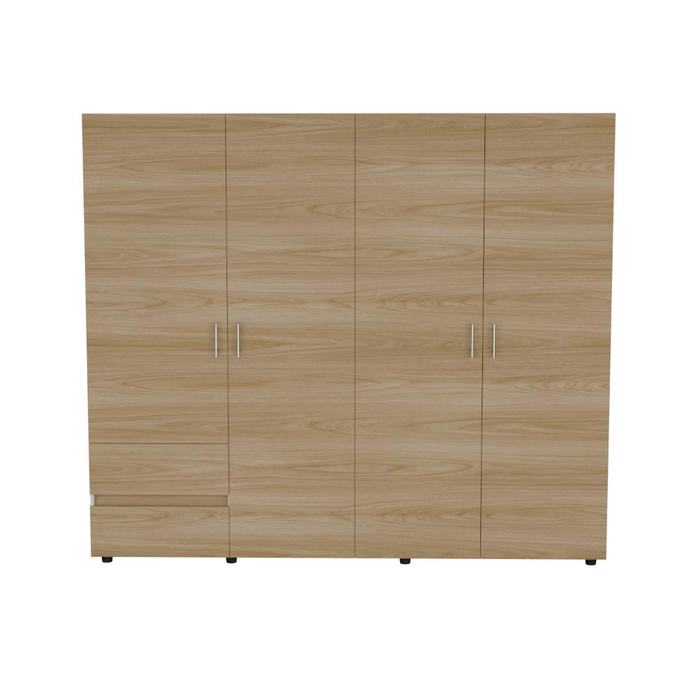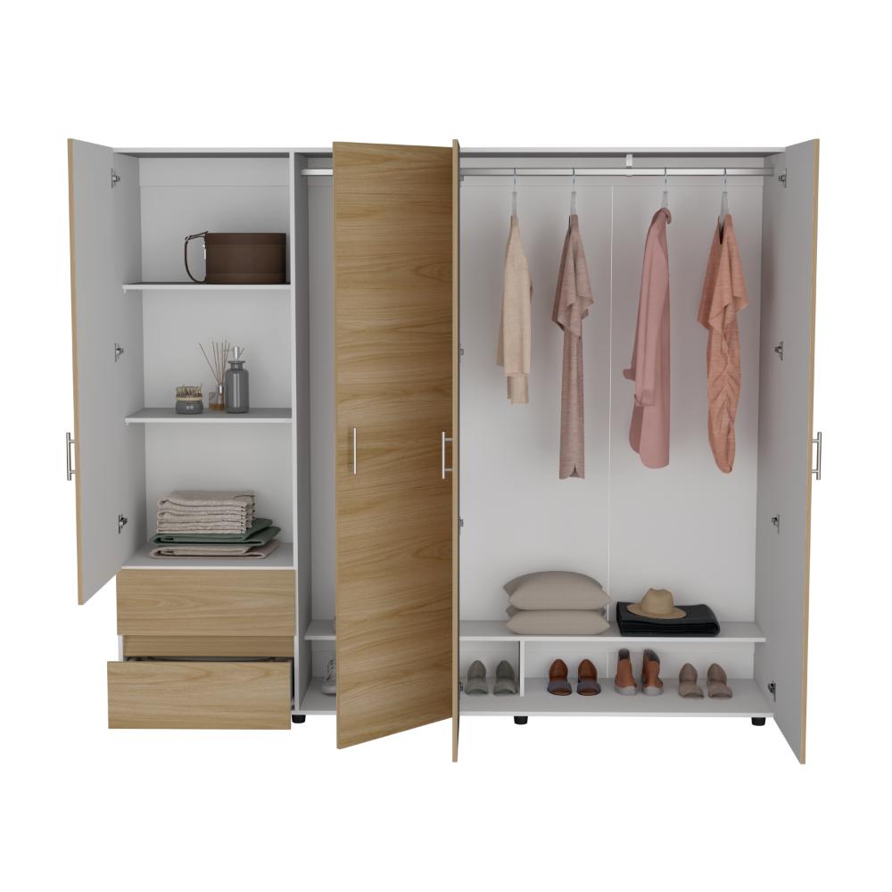 Closet Light 230, Blanco Duqueza y Fresno Europeo, con dos cajones y cuatro puertas