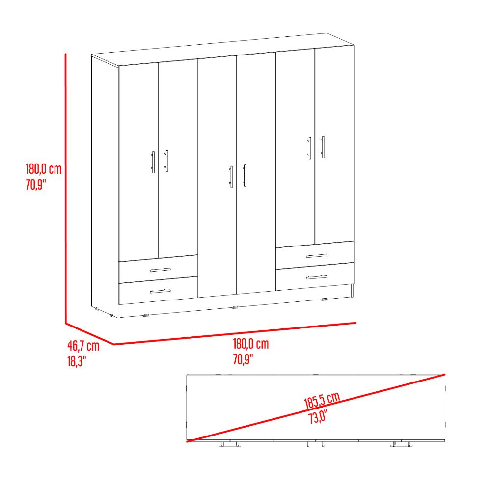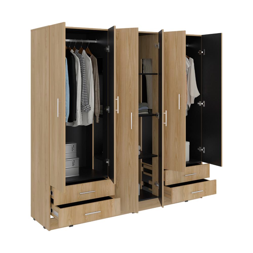 Closet, con amplios espacios y entrepaños para organizar, dos tubos de acero cromado para colgar, cuatro cajones organizadores multiusos cuatro puertas y de facil instalación.
