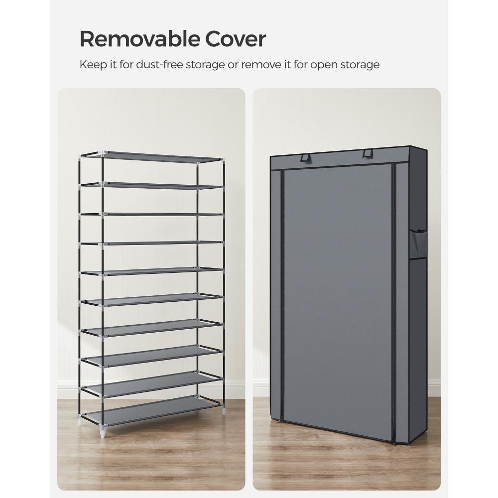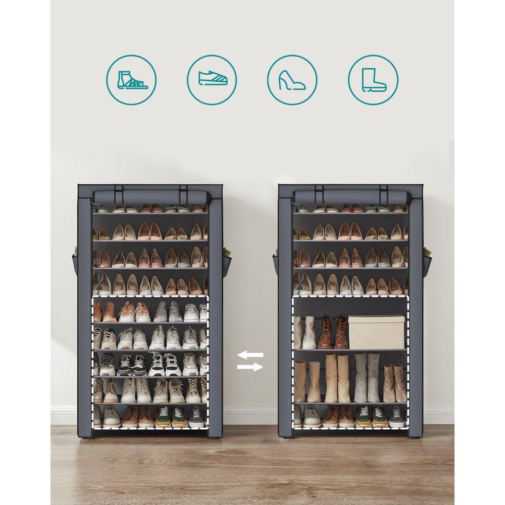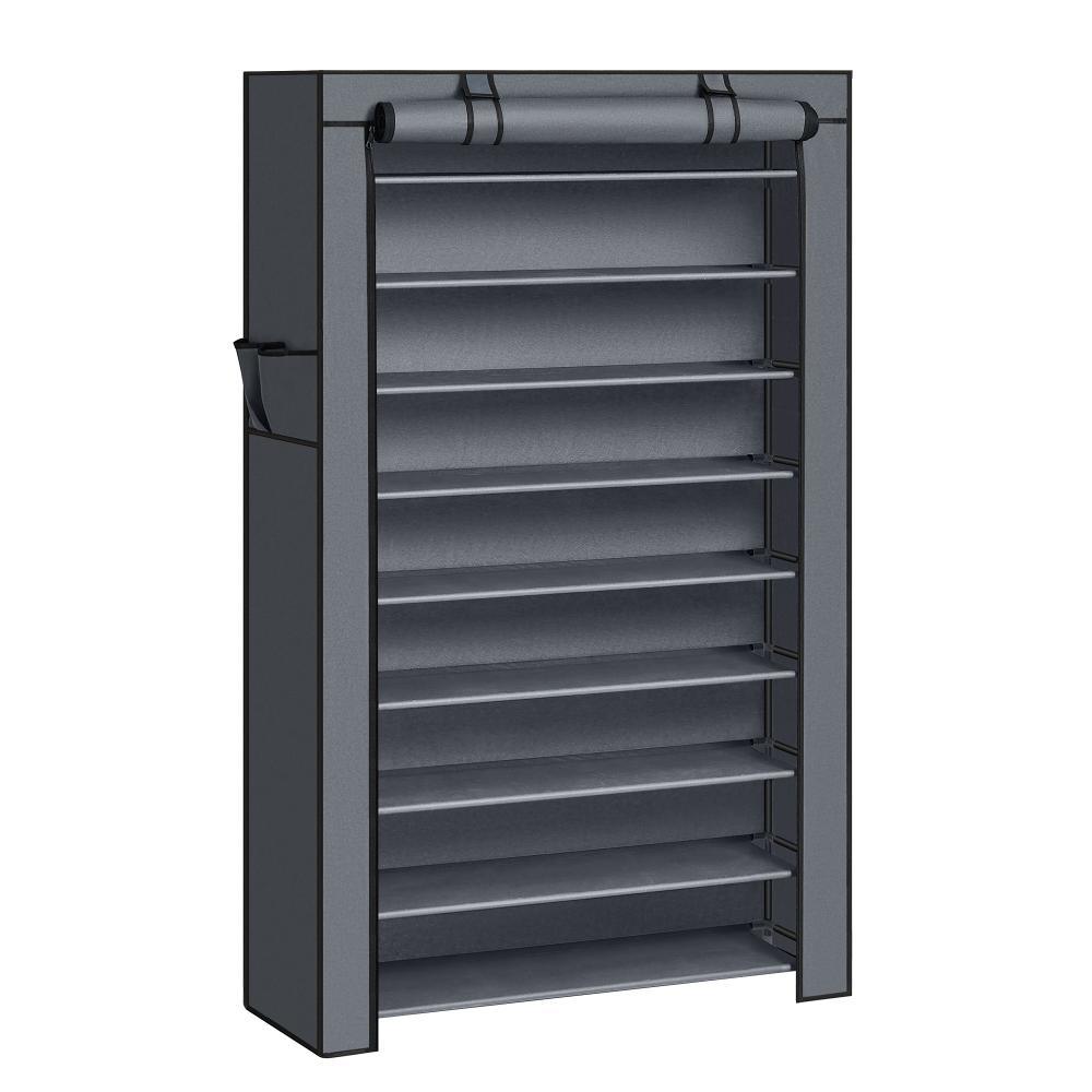 Zapatero de zapatos de 10 niveles, estante de almacenamiento de zapatos de metal para 27 pares de zapatos, fácil de montar, entrada, Gris