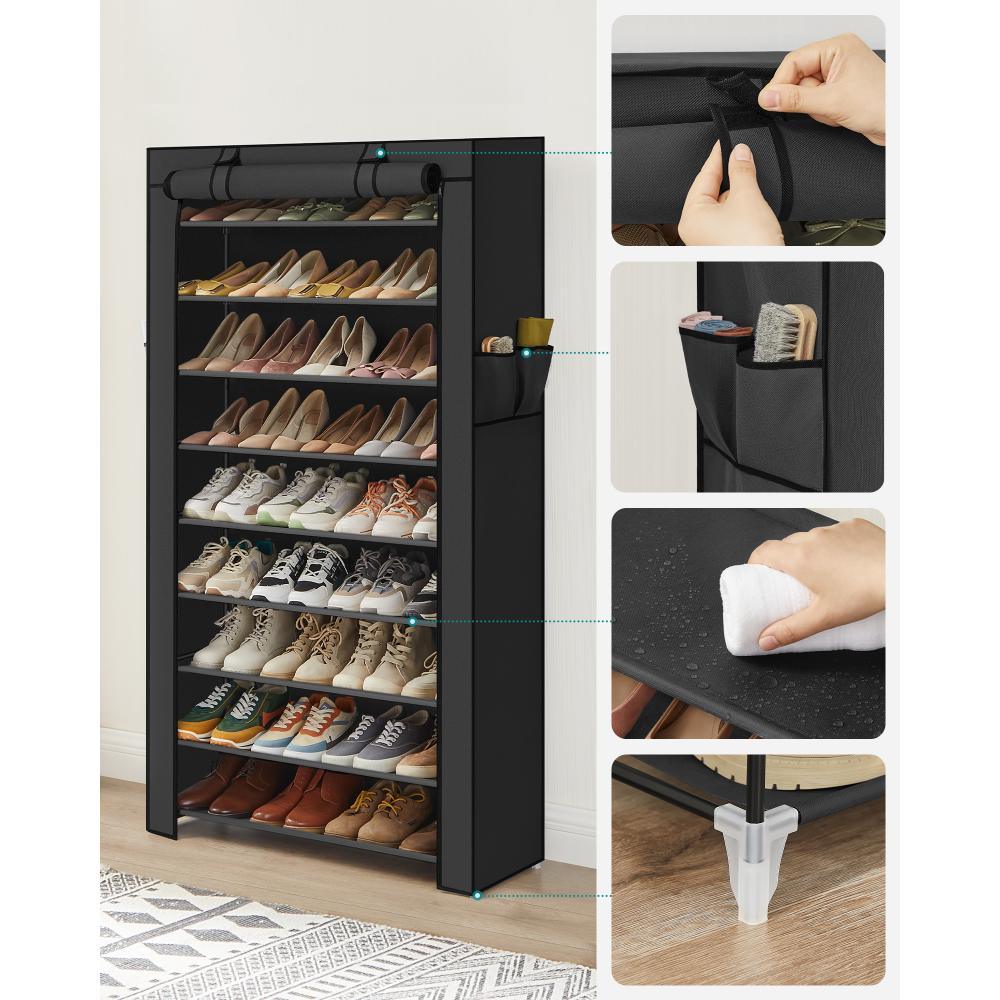 Zapatero de zapatos de 10 niveles, estante de almacenamiento de zapatos de metal para 28 pares de zapatos, fácil de montar, entrada, Negro