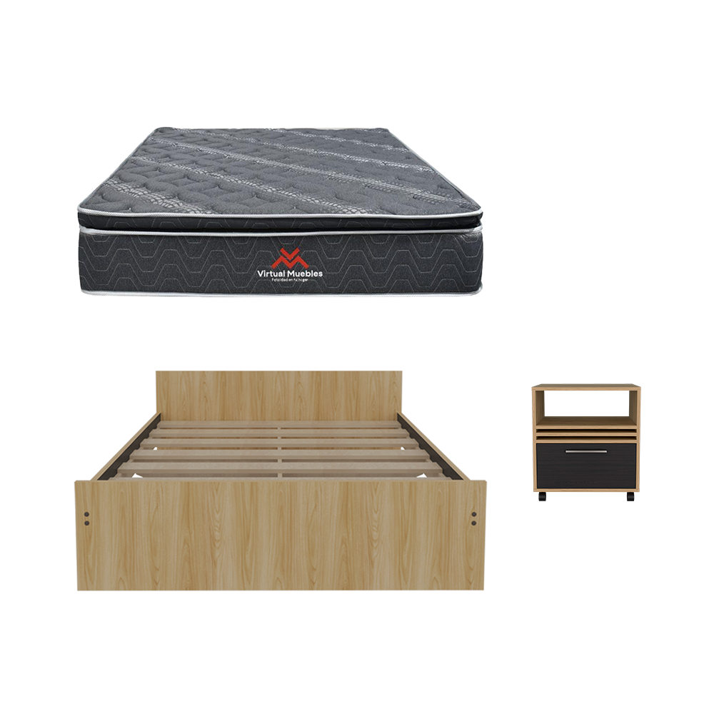 Combo para Habitación Beker, Incluye Cama Doble - Colchón y Mesa de Noche