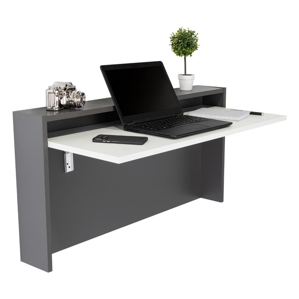 Escritorio Colgante Frello, Plata Oscuro y Blanco, con Espacio Para Artículos de Estudio