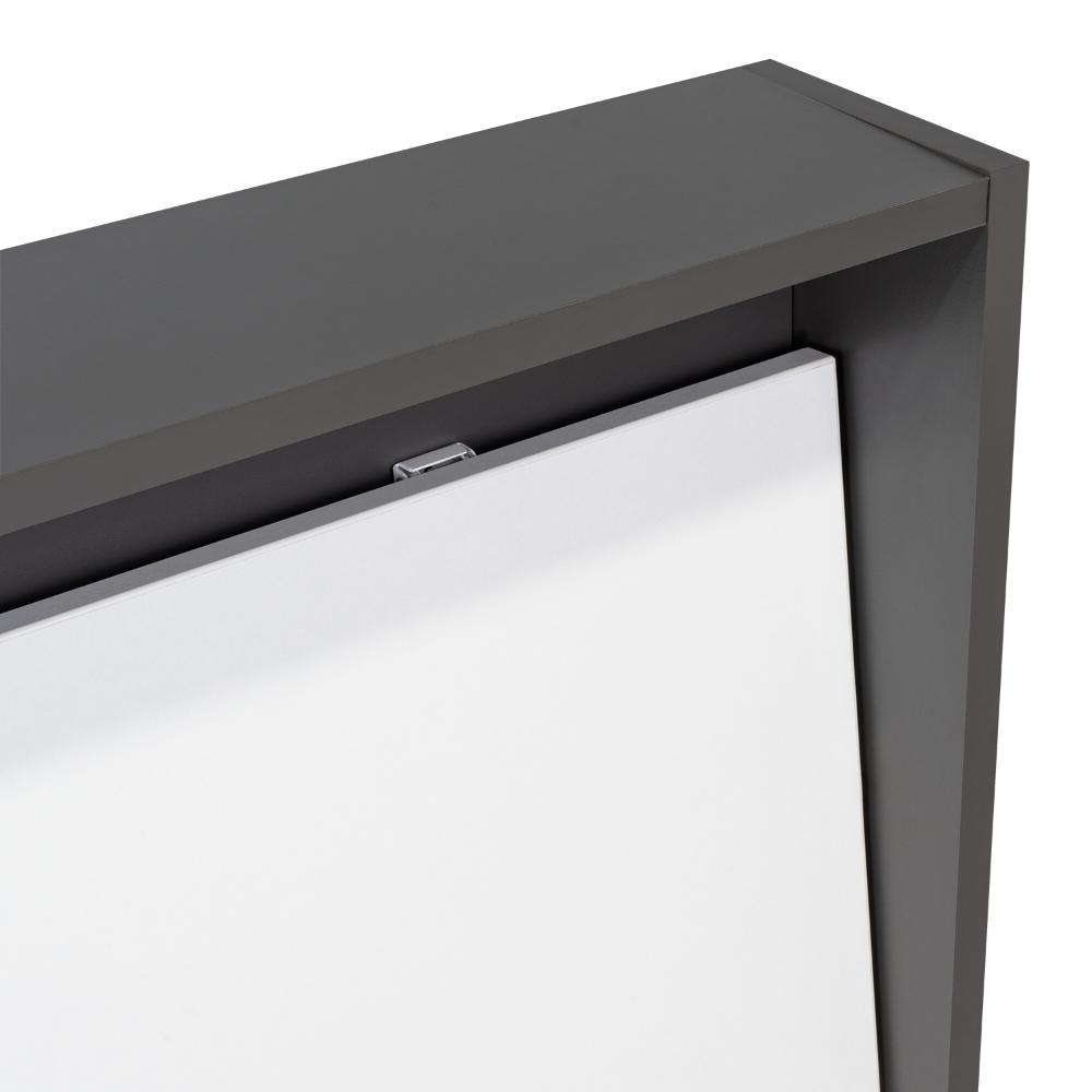 Elaborado en Madera aglomerada MDP, recubierta con láminas melamínicas de excelente calidad, en color Plata oscuro y Blanco.