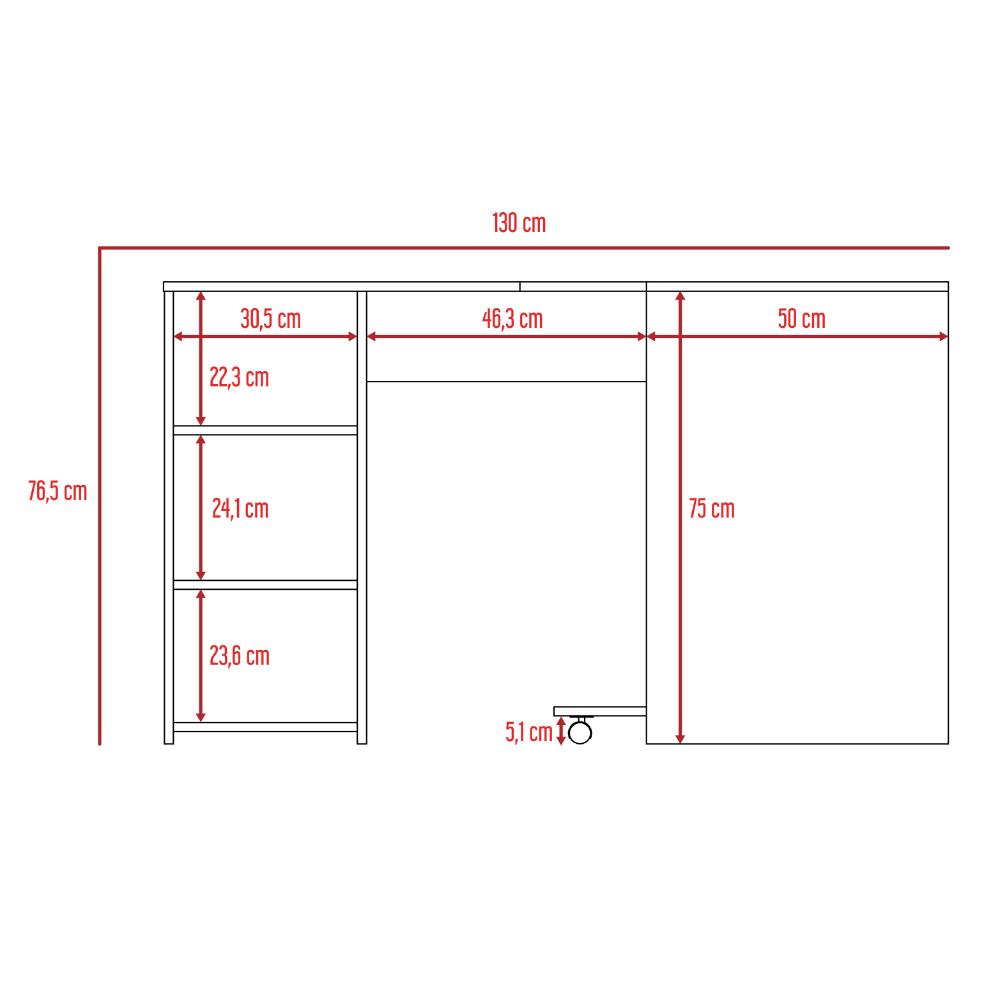 Escritorio En L Dafne, Bardolino, con Dos Entrepaños y Base con Rodachinas Para Fácil Desplazamiento Hc