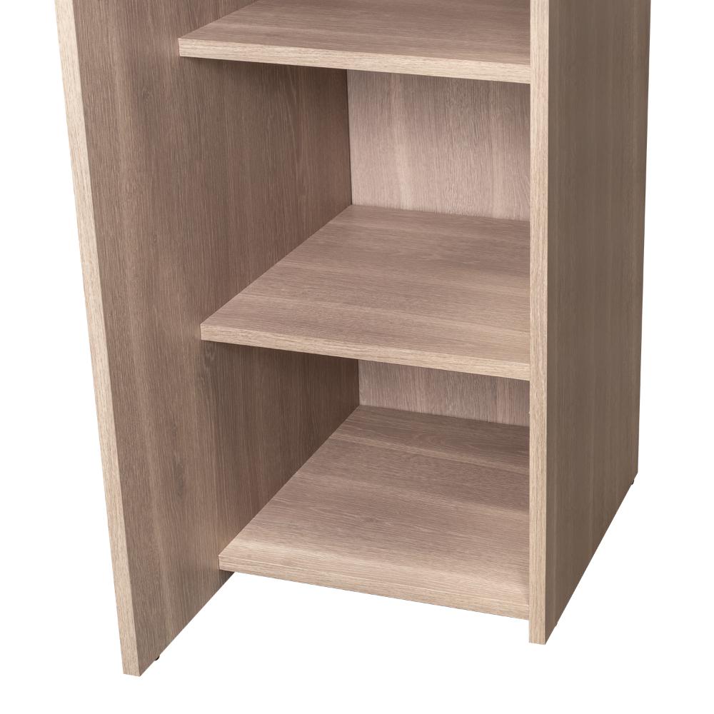 Elaborado en Madera aglomerada MDP, recubierta con láminas melamínicas de excelente calidad, en color Bardolino.