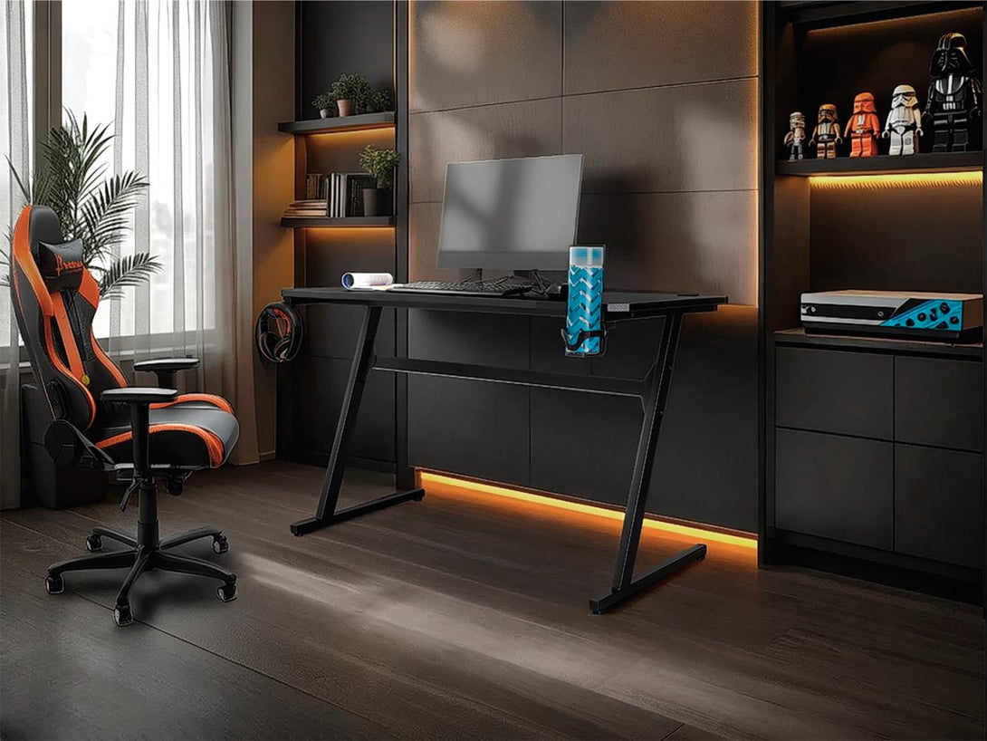 Escritorio Gamer , tablero en malamina de 18 mm, tubos de metal con cubrimiento de polvo, y es de facil armado.