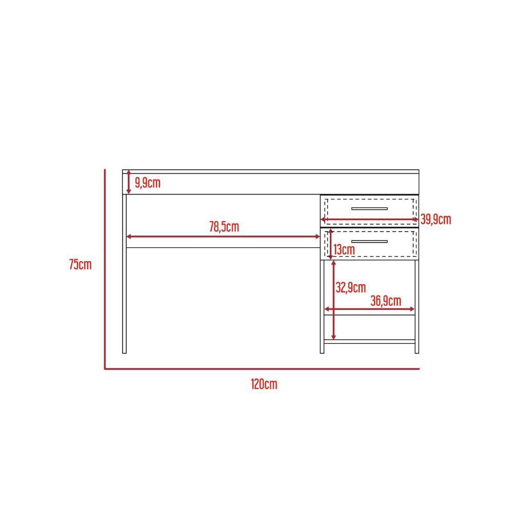 Escritorio Hazel, Chocolate, con Un Entrepaño y Dos Cajones