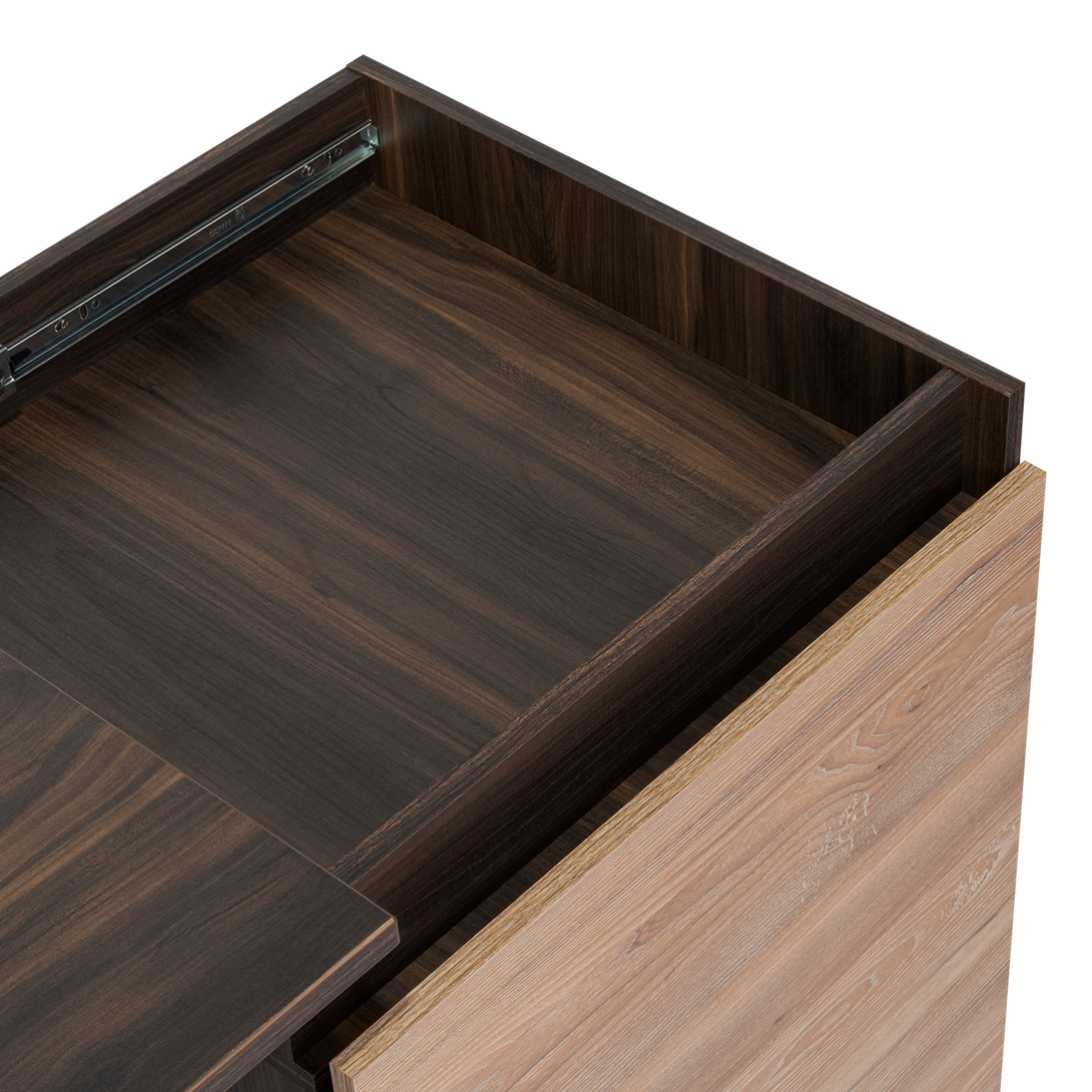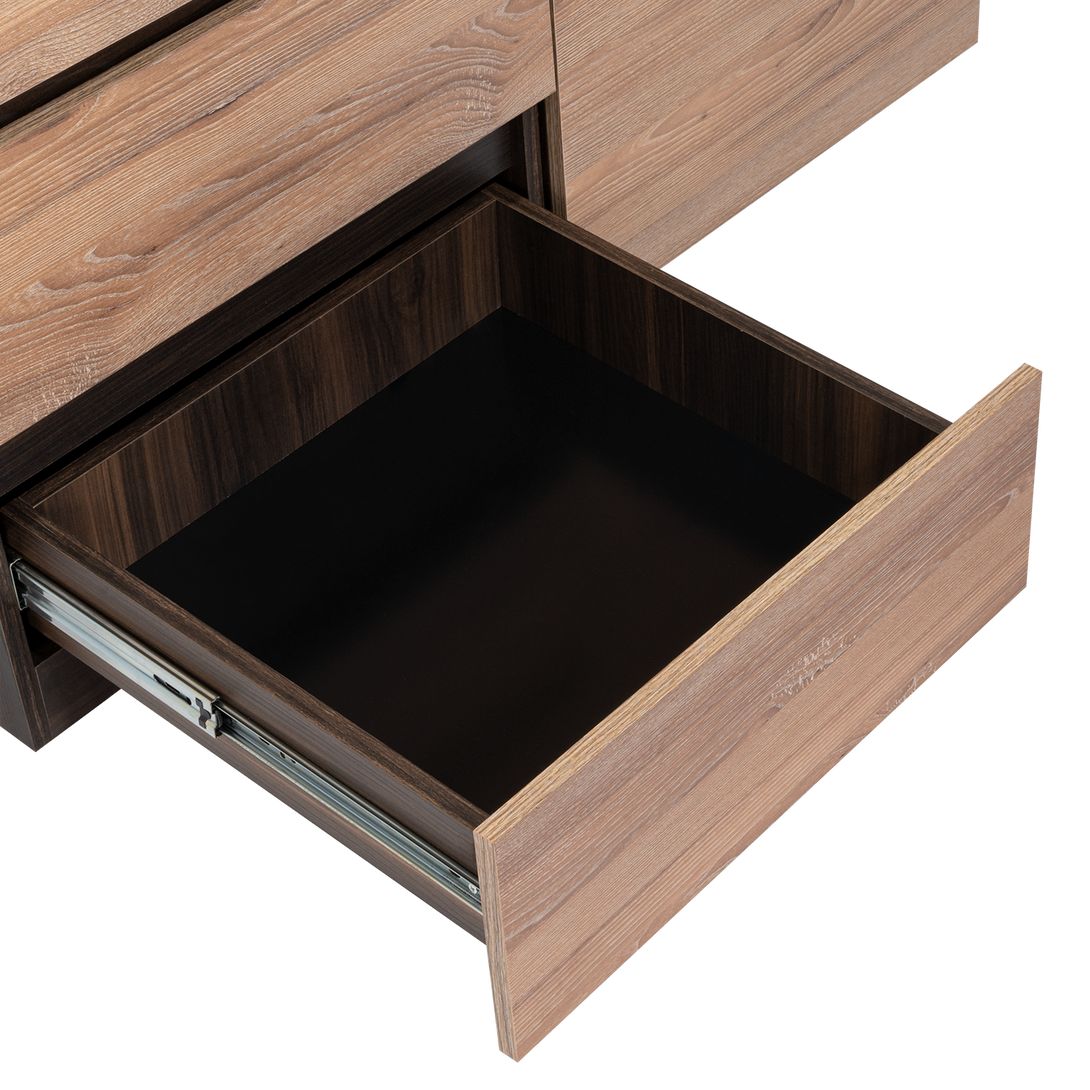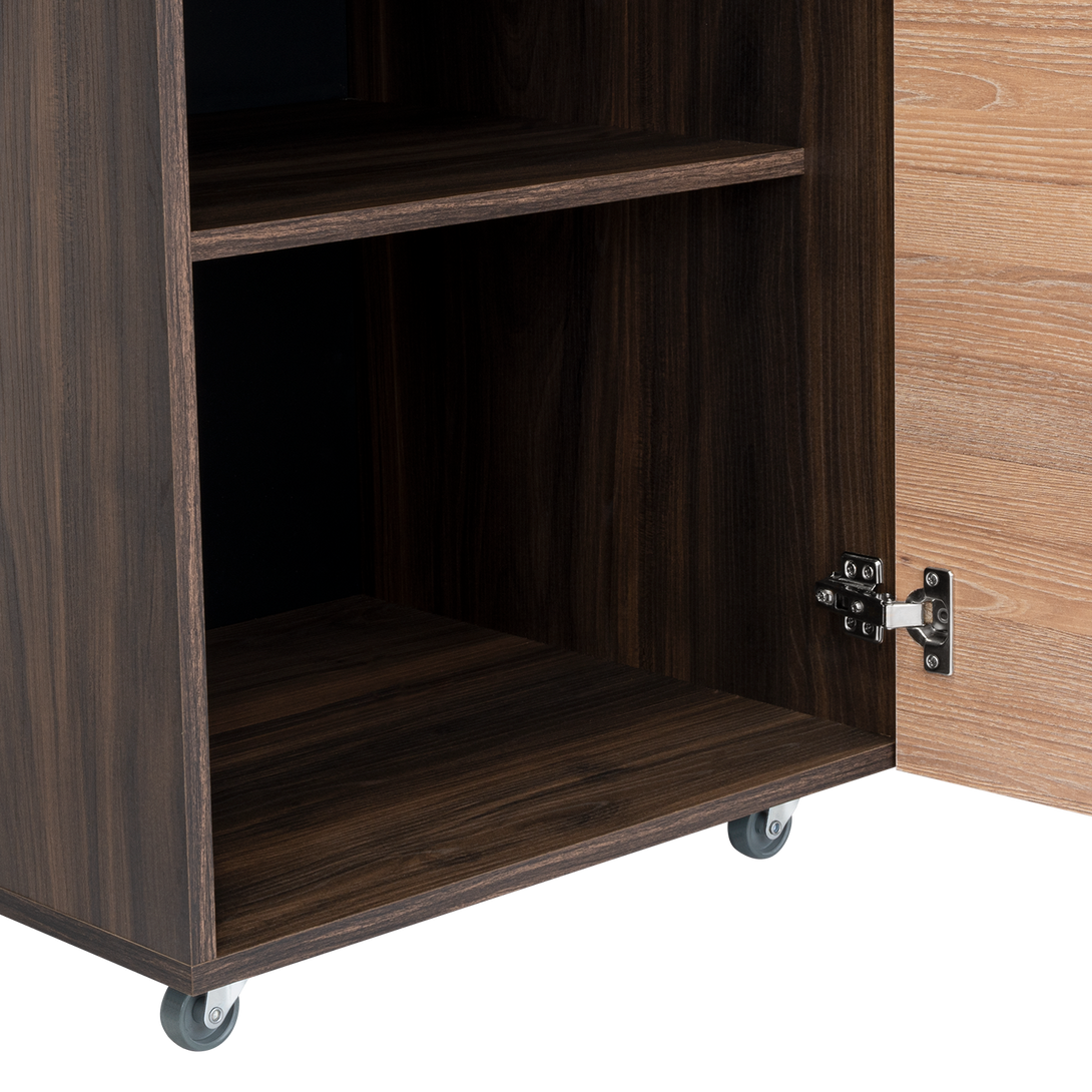 Elaborado en Madera aglomerada MDP, recubierta con láminas melamínicas de excelente calidad, en color Caoba y Miel.
