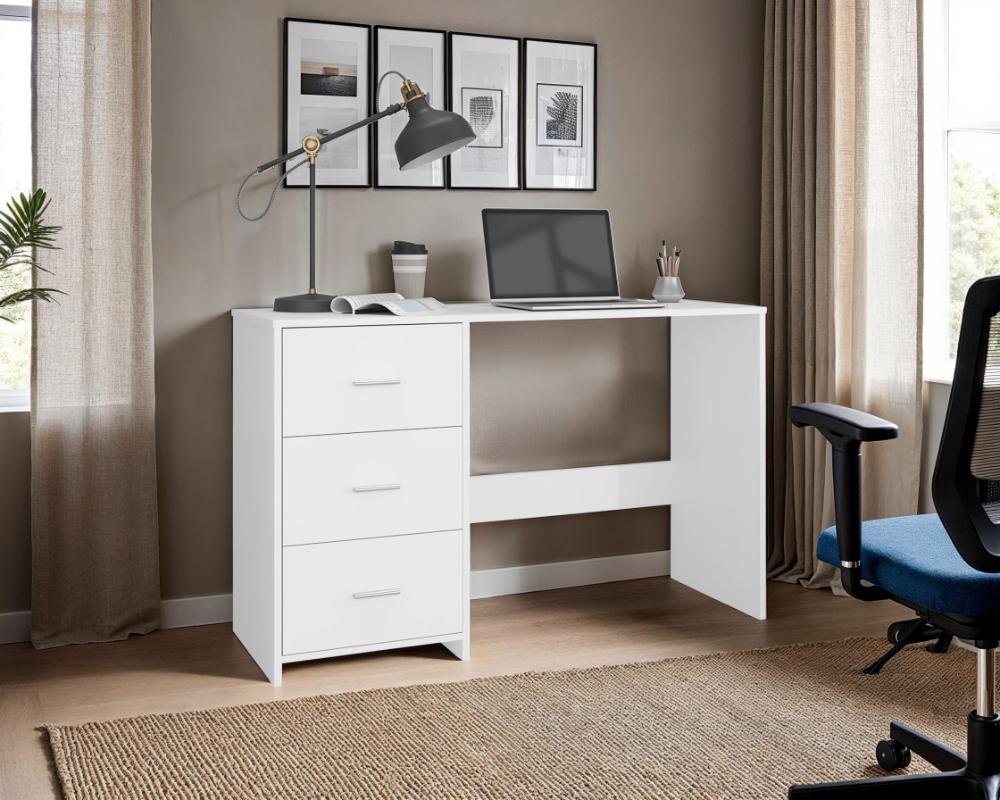 Escritorio Zoelo, Blanco Duqueza, con Tres Cajoneras Manijas Metálicas y Amplio Espacio de Almacenamiento