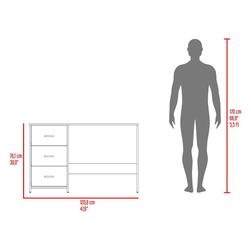 Escritorio, con tres Cajoneras manijas metálicas y amplio espacio de almacenamiento.