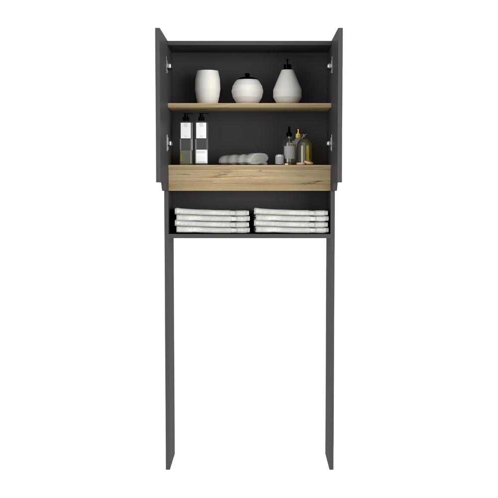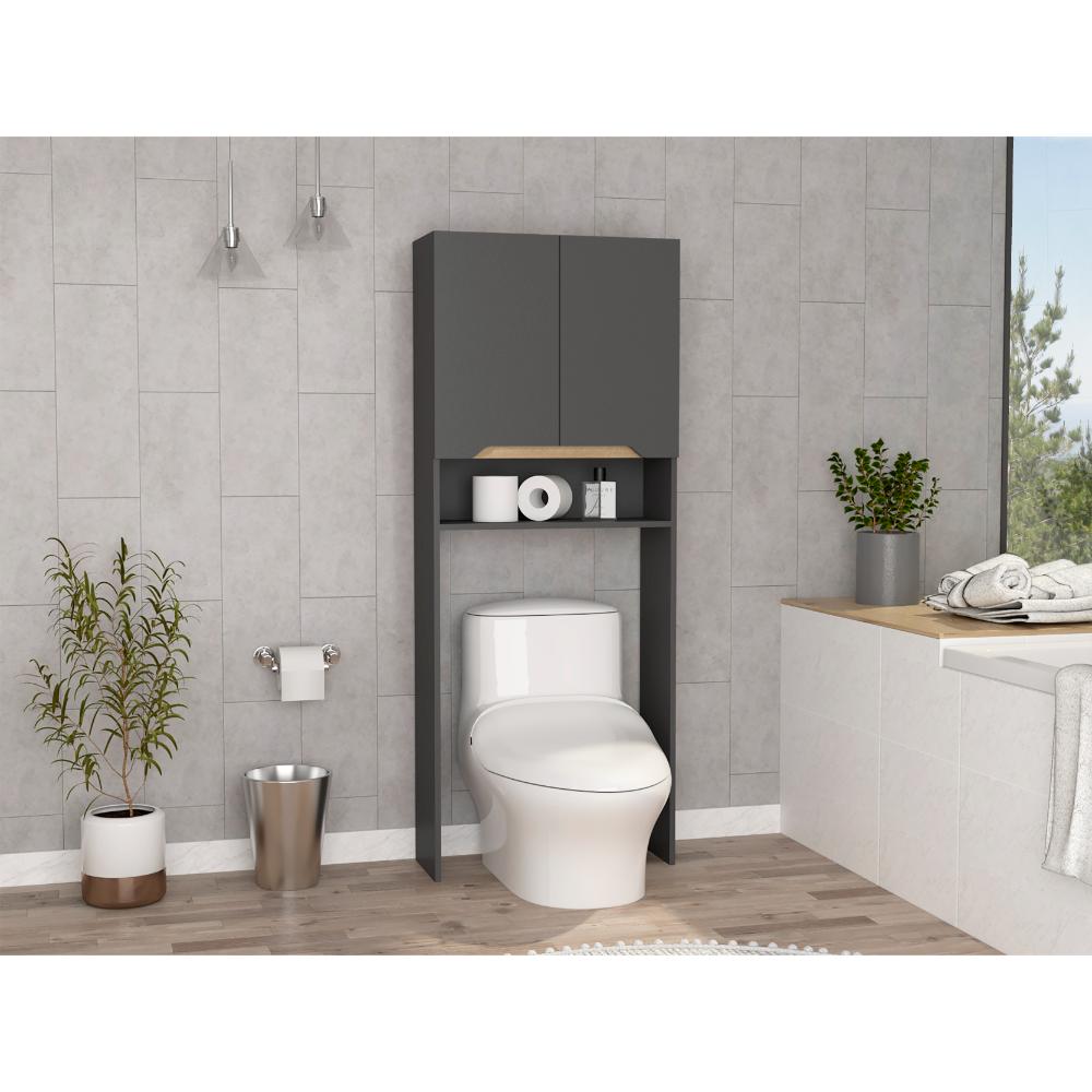 Gabinete de Baño Apolis Plata Oscuro y Café Claro, con Puertas con Apertura Sin Manijas y Dos Puertas