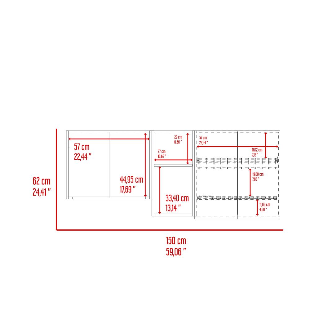 Gabinete Superior , con cuatro puertas abatibles, manijas metálicas, incluye locero y portavasos, gran espacio para almacenamiento.