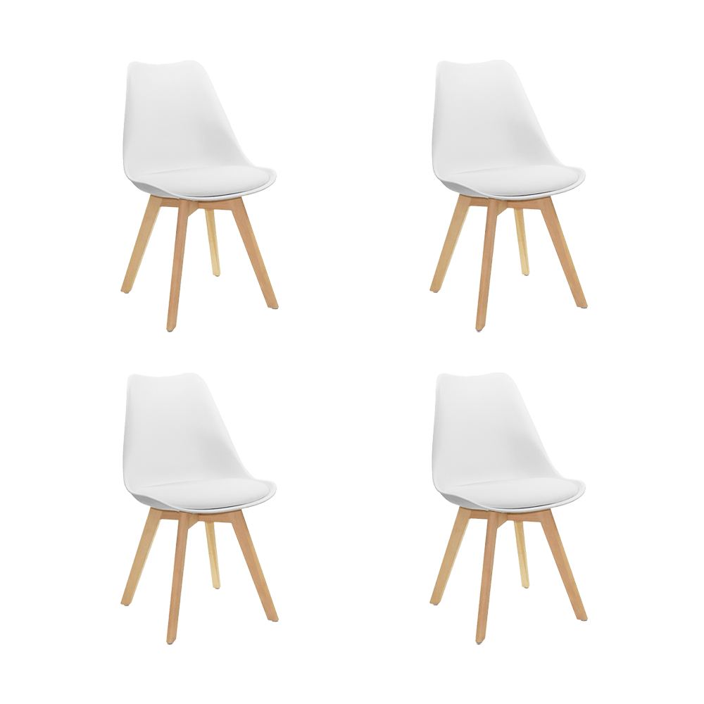 Kit de Cuatro Sillas Sasha, Blanco y Café claro, cómodo asiento y patas en madera