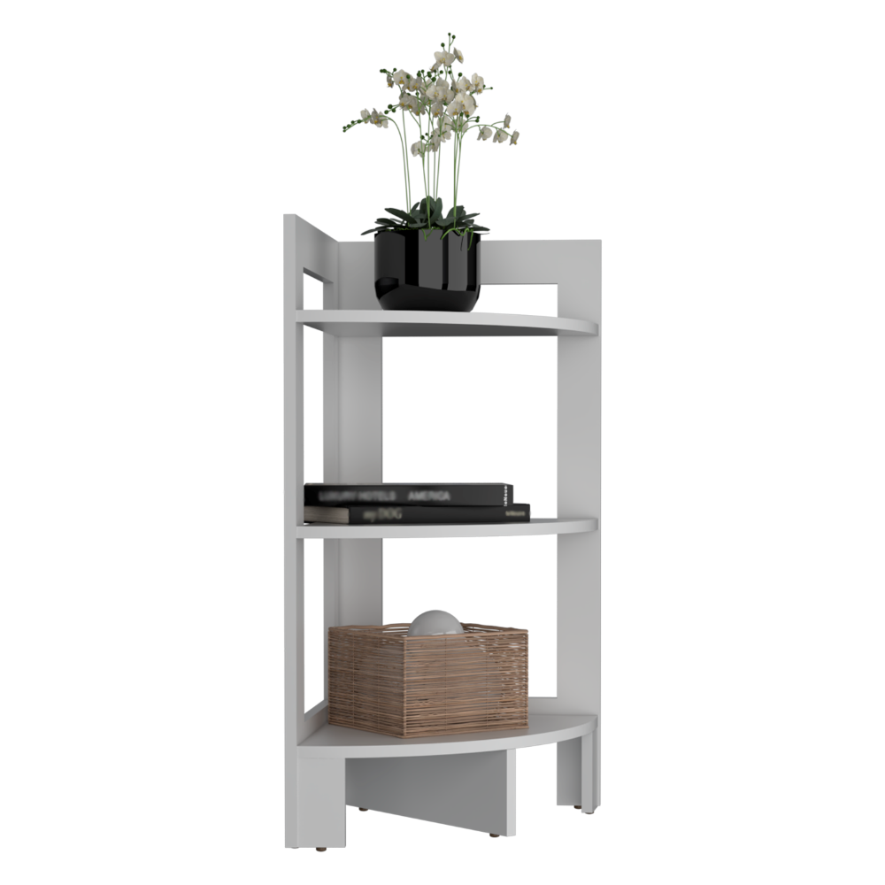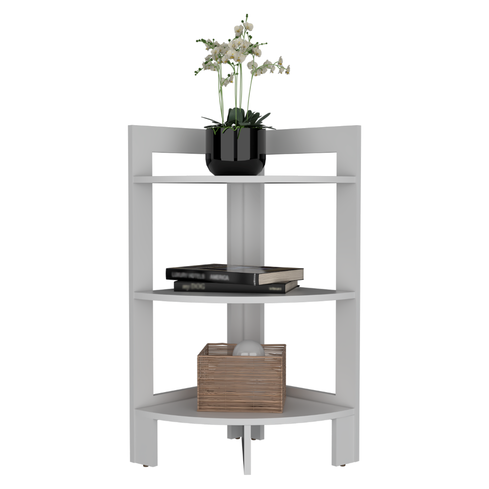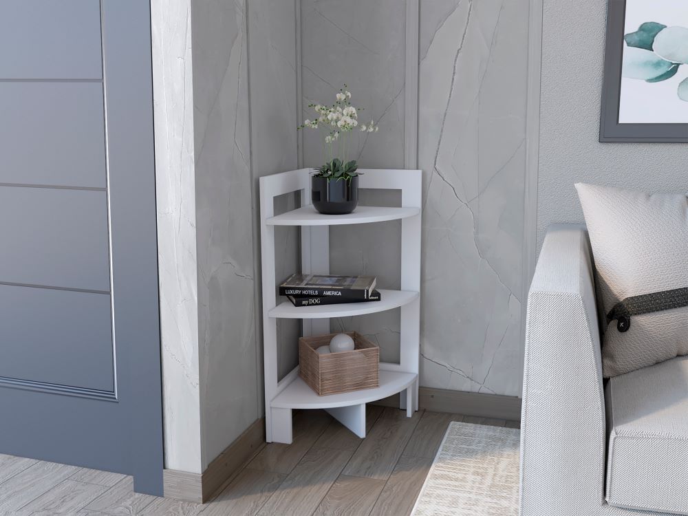 Mesa Auxiliar Esquinera, con tres entrepaños para ubicar objetos decorativos.