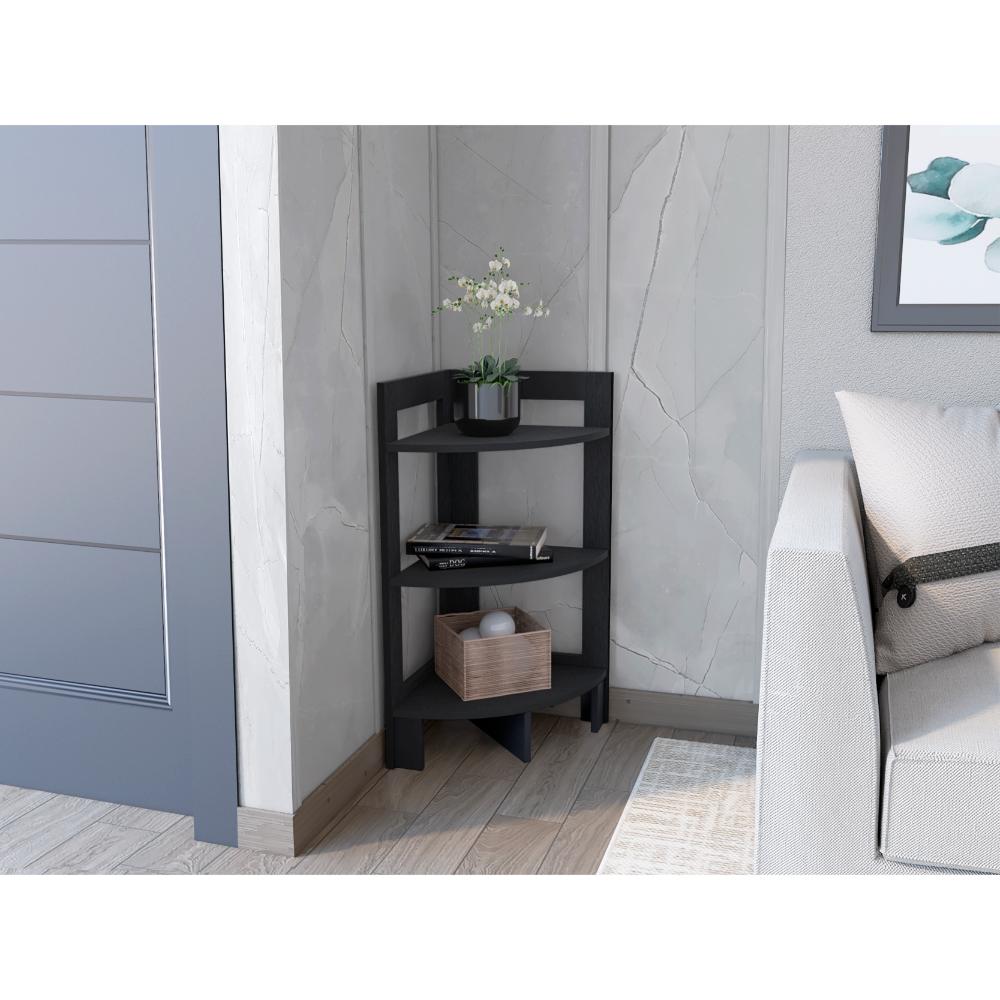 Mesa Auxiliar Esquinera Athos, Wengue, con tres entrepaños para decorar