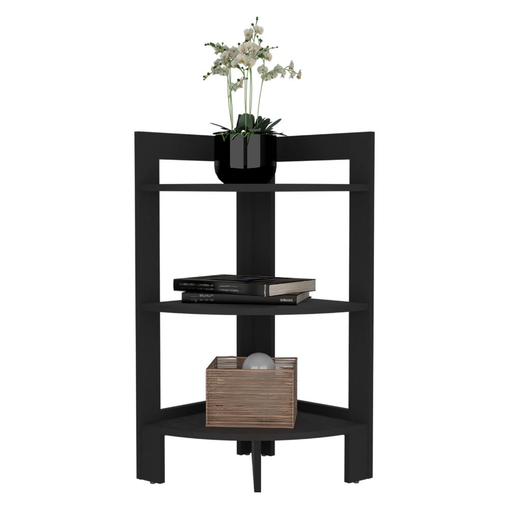 Mesa Auxiliar Esquinera, con tres entrepaños para ubicar objetos decorativos.