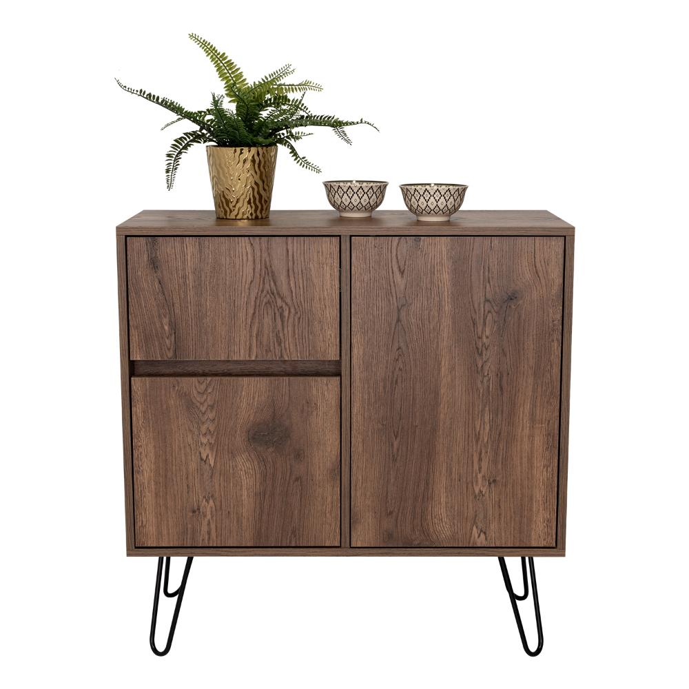 Mesa Auxiliar, Rony, Nogal, con Dos Puertas y Un Cajon