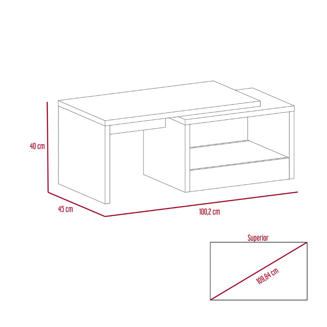 Mesa de Centro,con diseño moderno, patas en acero, espacios inferiores para colocar objetos decorativos, un cajón.