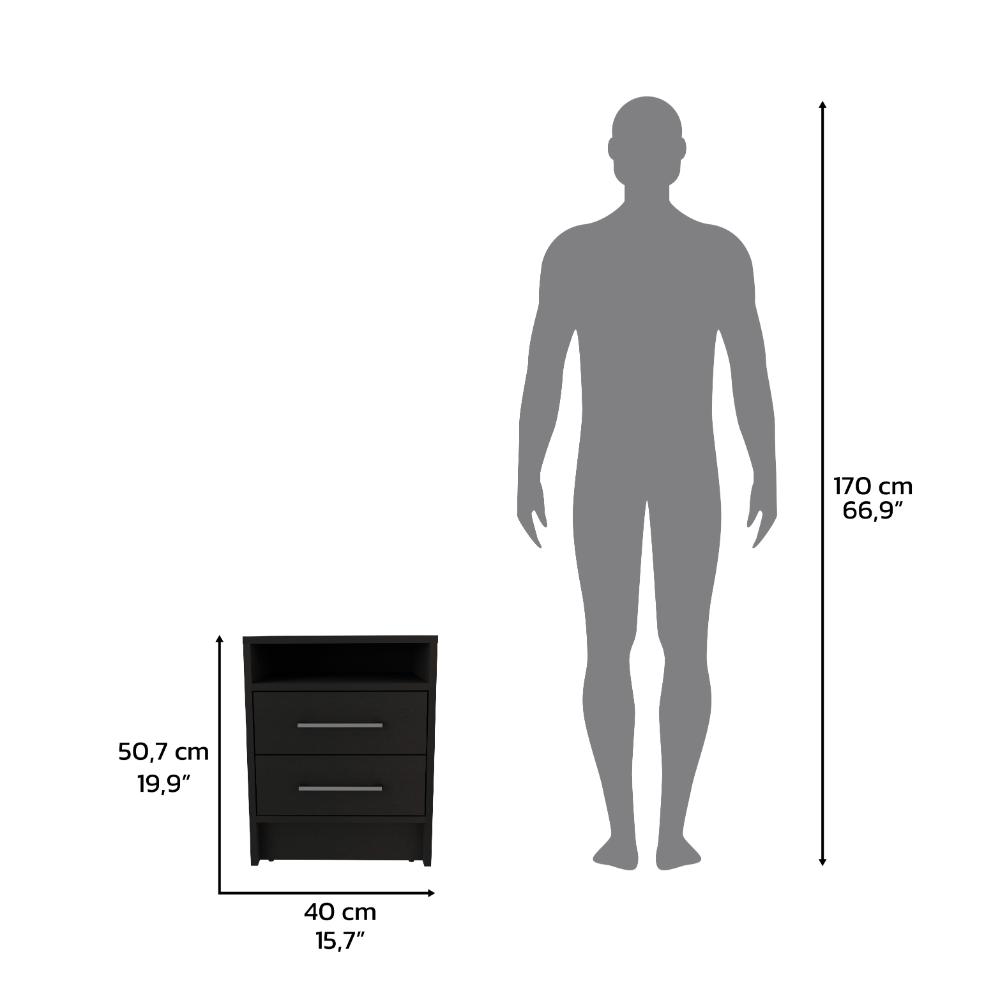 Mesa de Noche, con superficie para ubicar pertenencias, y 2 cajones organizadores.