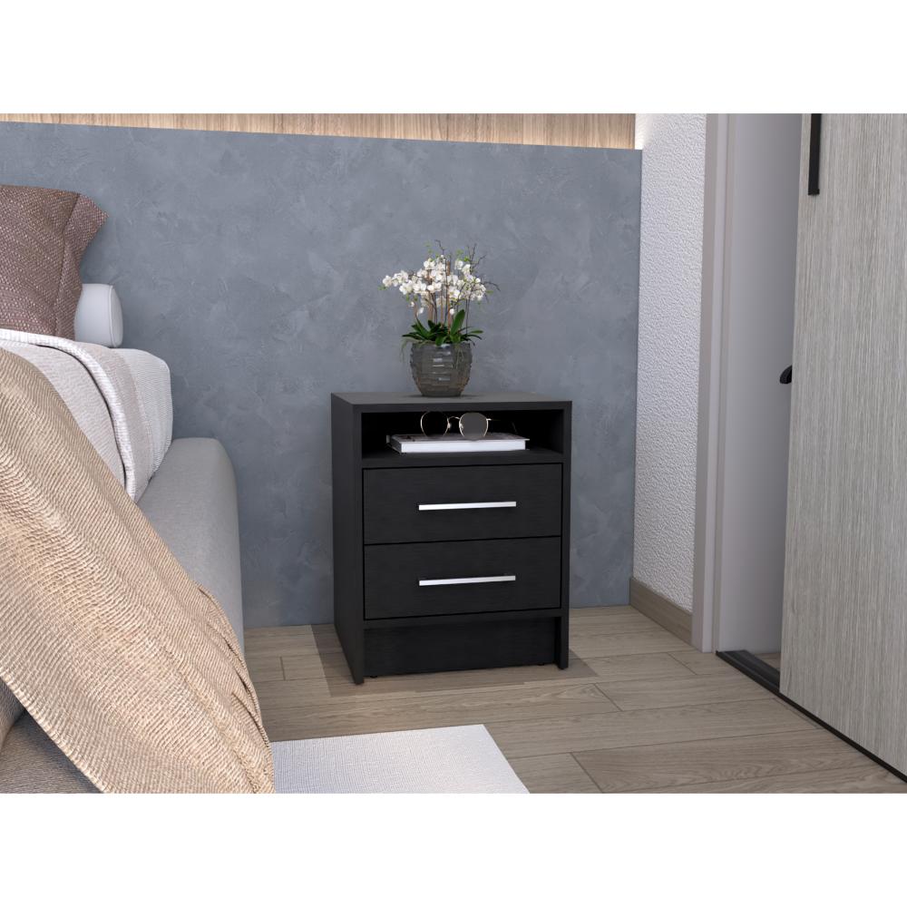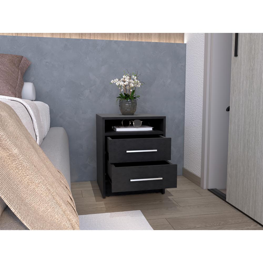 Mesa de Noche Douglas II, Wengue, con Un Entrepaño Superior y Dos Cajones Organizadores ZF