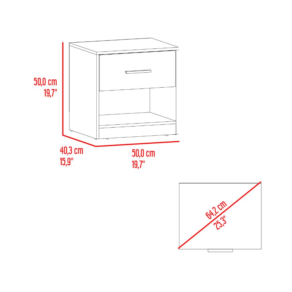 Mesa de Noche, con 1 cajon con espacio para colocar objetos decorativos.