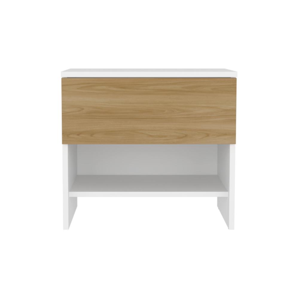Mesa de Noche Light, Fresno Europeo y Blanco, con superficie para objetos decorativos