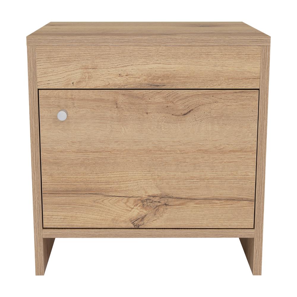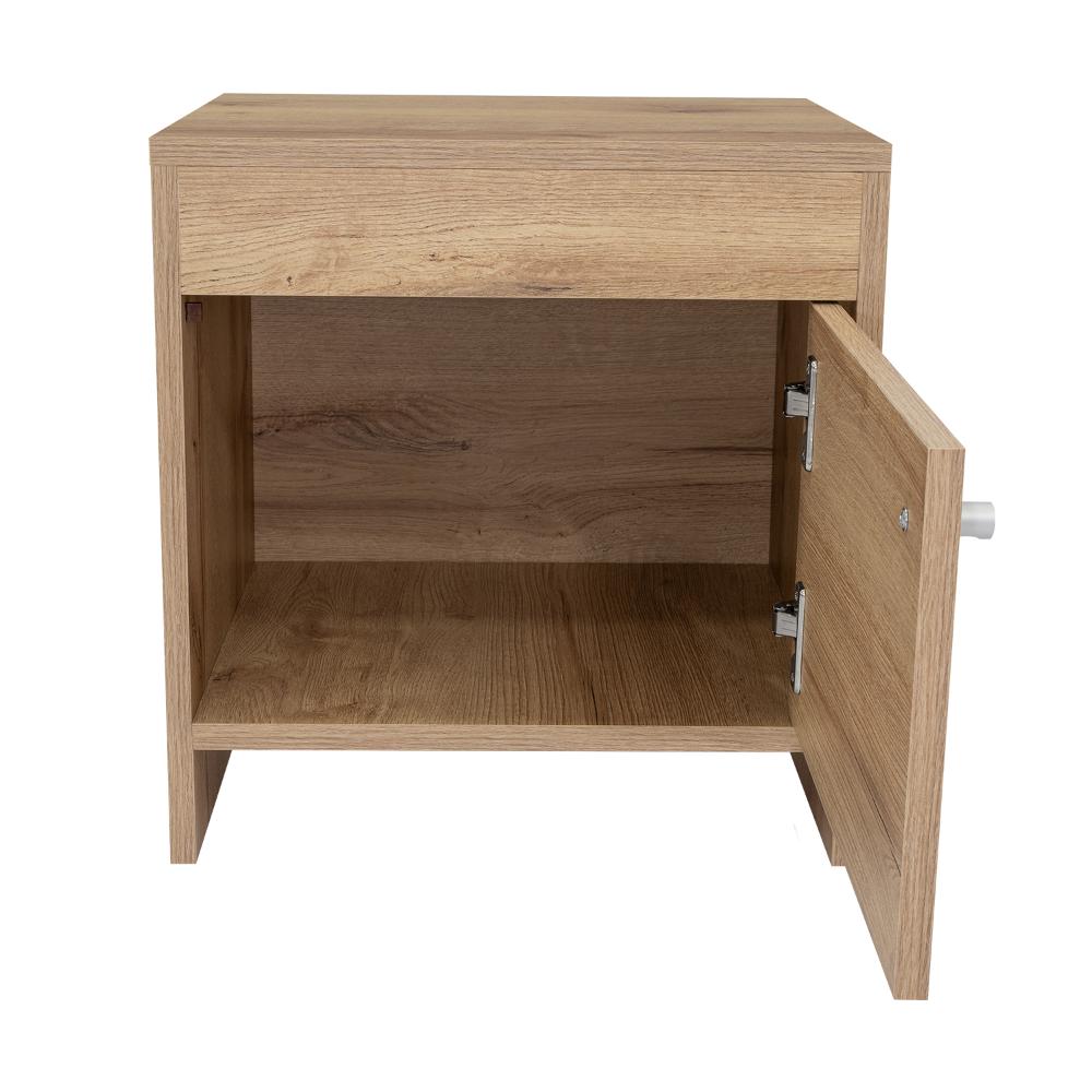 Mesa de Noche Tutto, Café Claro, con Cajón Para Guardar Objetos Ideal Para Espacios Reducidos