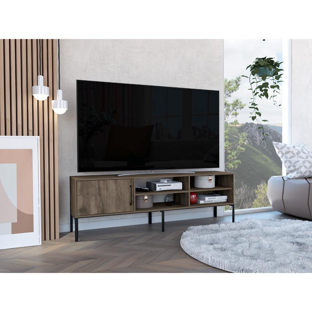 Mesa de TV, con diseño moderno, una puerta abatible, TV de 65'' máximo, estructura metálica