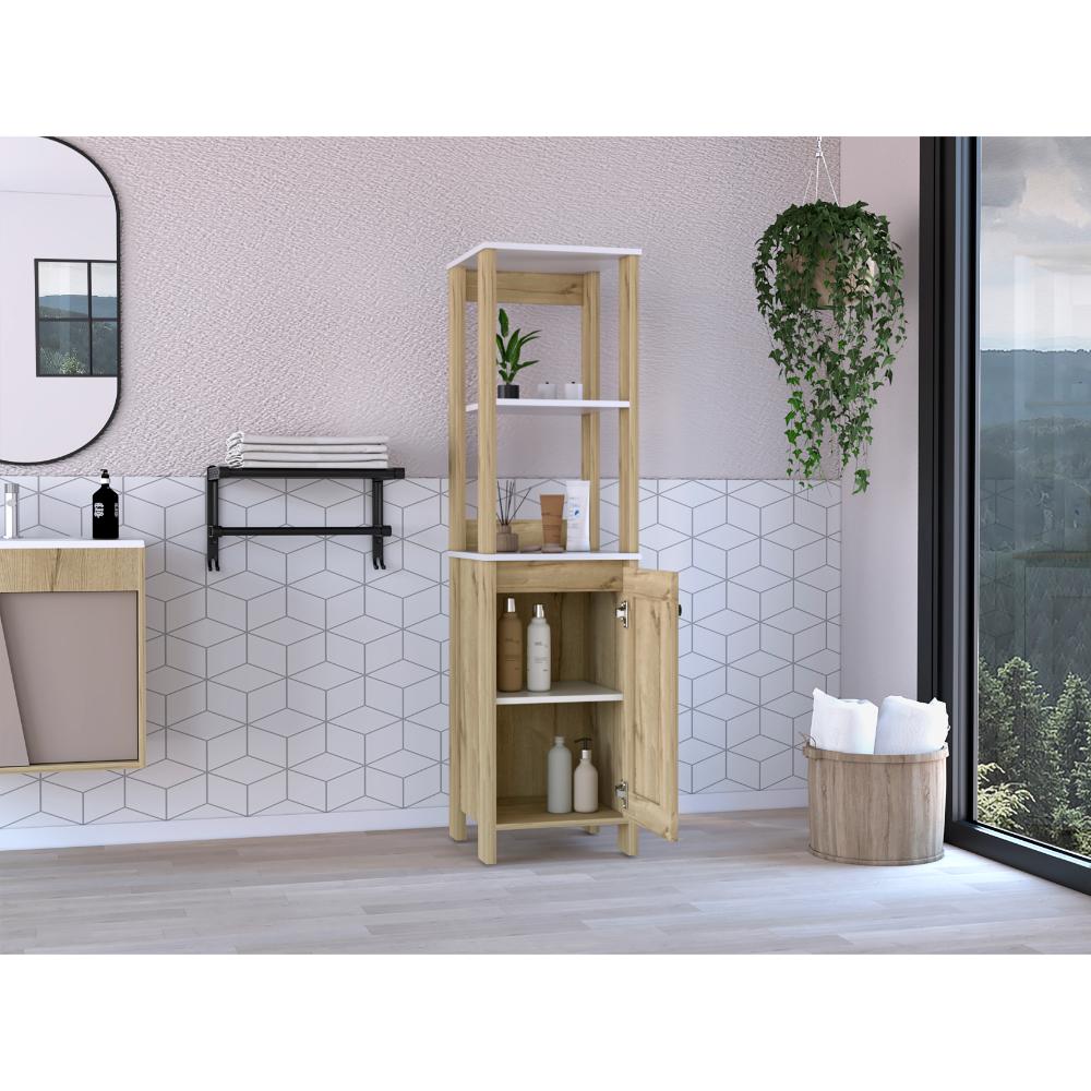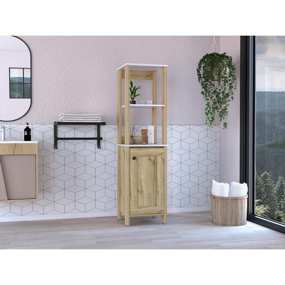 Mueble Auxiliar de Baño Aqua, Blanco Duqueza y Café Claro, con amplio espacio de almacenamiento