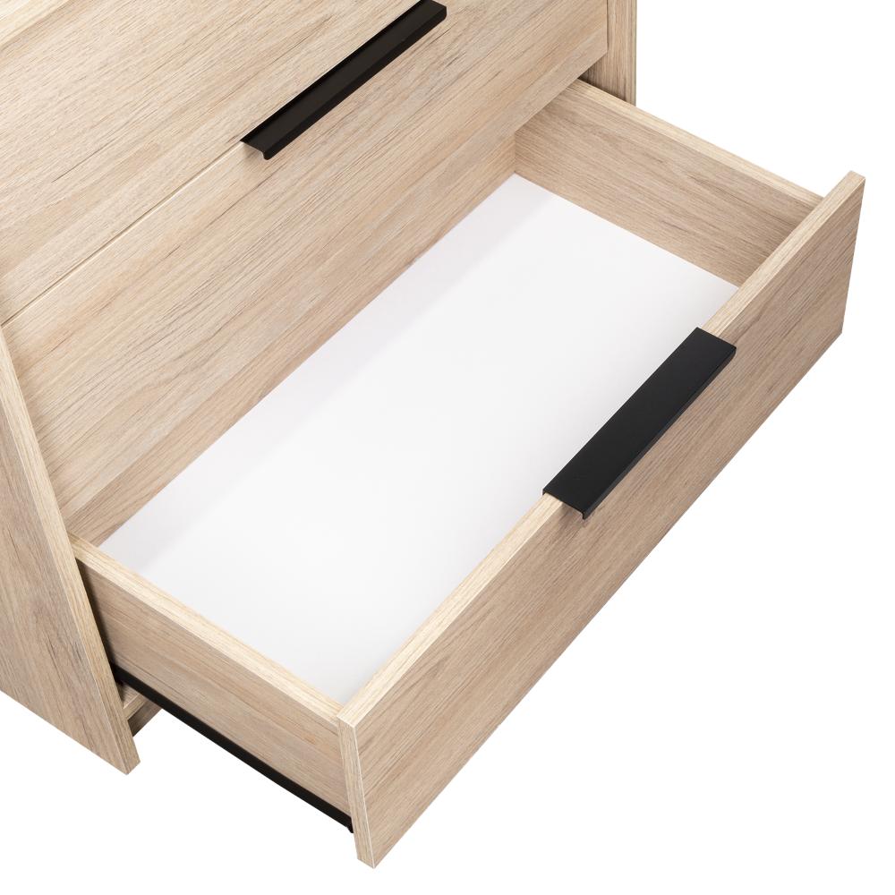 Elaborado en Madera aglomerada MDP, recubierta con láminas melamínicas de excelente calidad, en color Beige y Blanco.