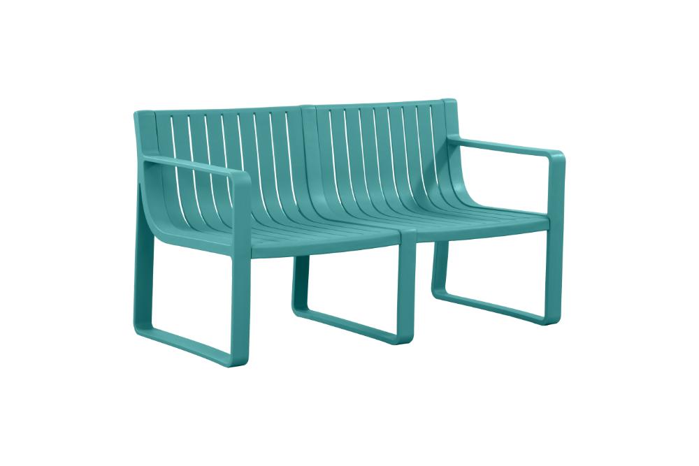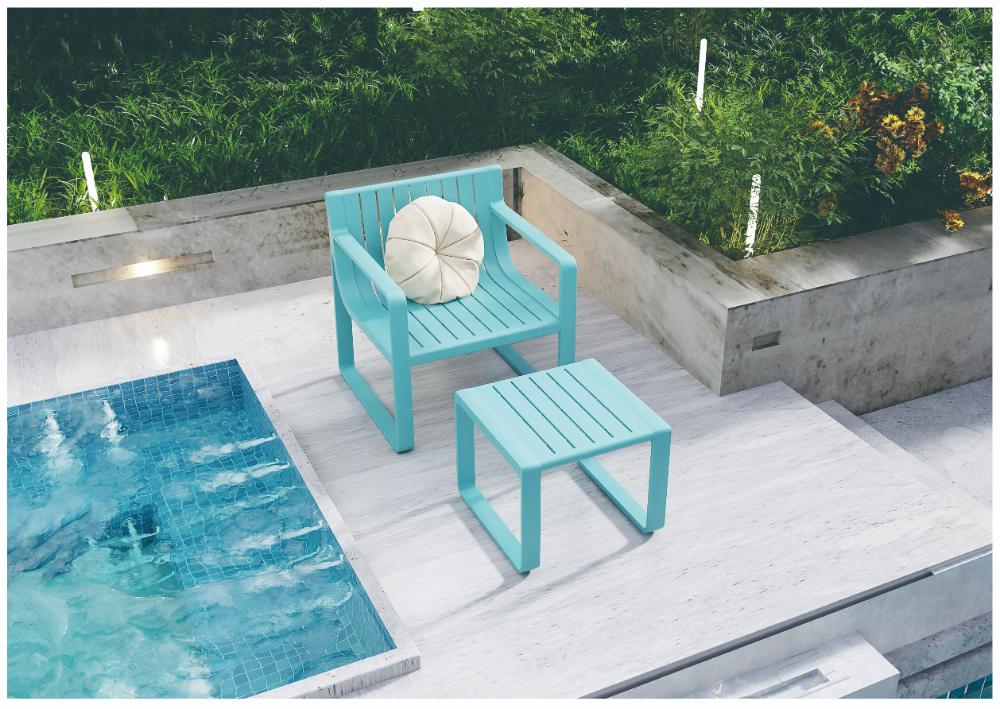 Elaborado en Polipropileno el set incluye mesa centro, dos sillas y un banco, en Color Azul Marino