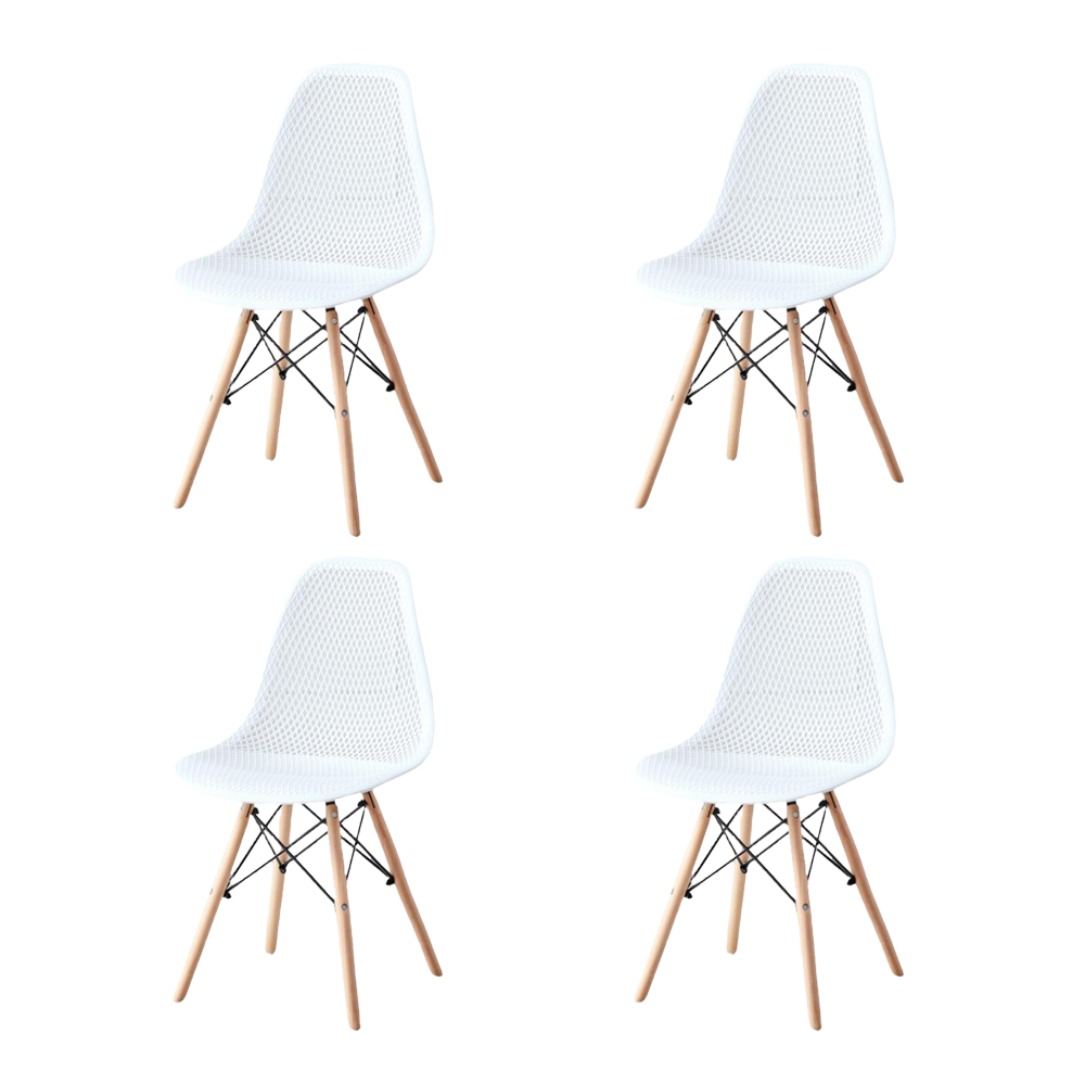 Silla Marcus, Color Blanco, Con espaldar y patas en Madera X4