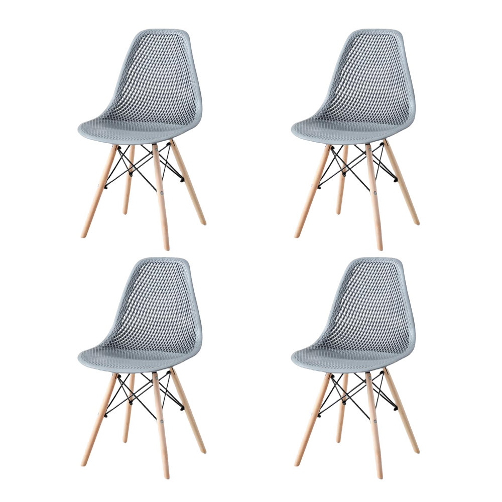 Silla Marcus, Color Gris Oscuro, Con espaldar y patas en Madera X4